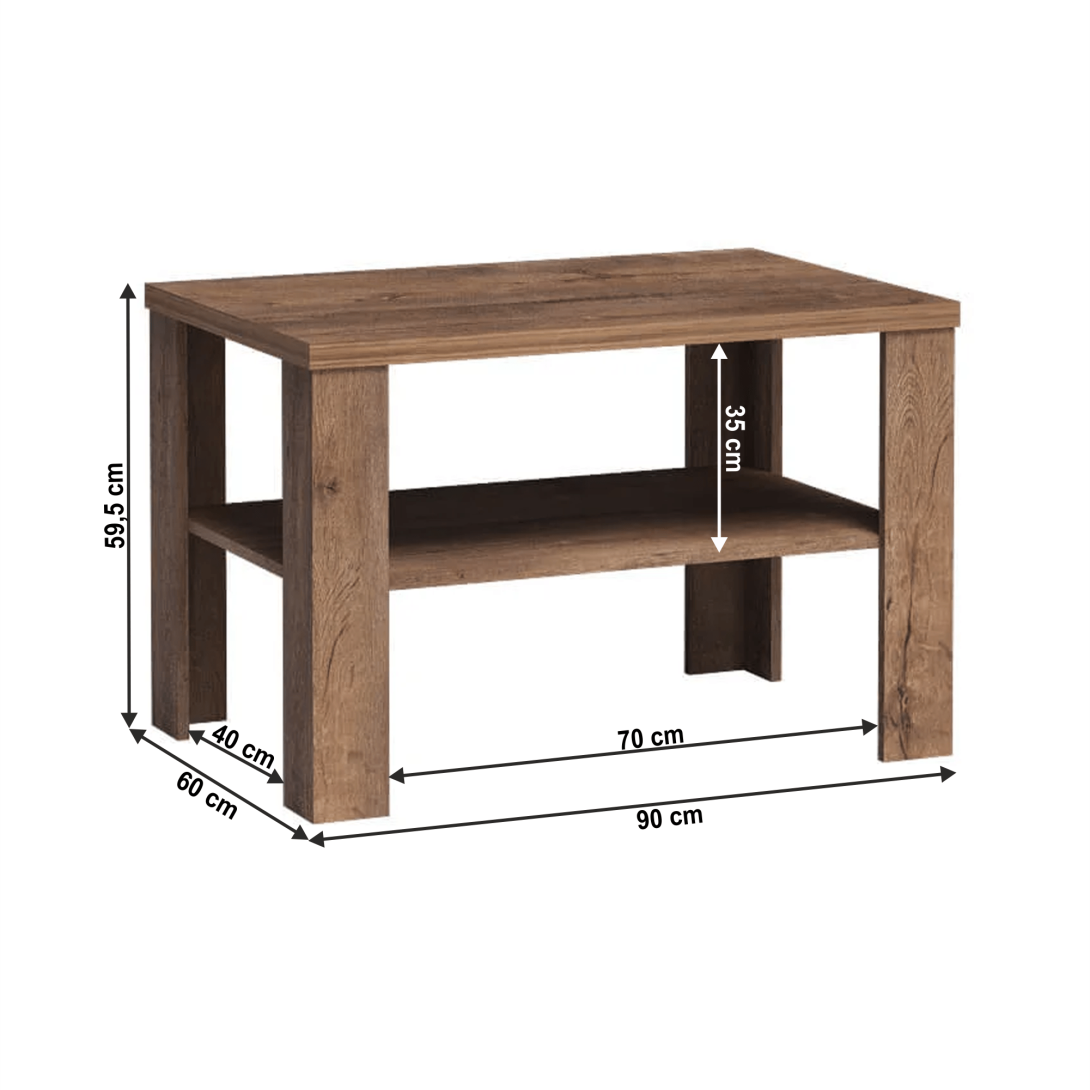 Konferenčný stolík TEDY TYP T23Materiál: DTD laminovaná/ABS hrany/MDFFarba: dub lefkasRozmery (ŠxHxV): 90x60x59 cmHrúbka materiálu: 32 mmHrúbka materiálu zvyšné časti: 16 mmDodávané v demonte.