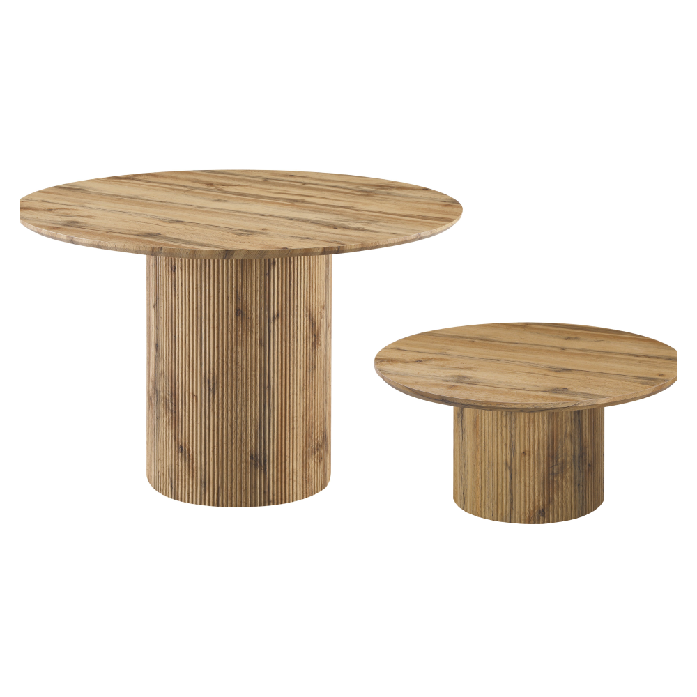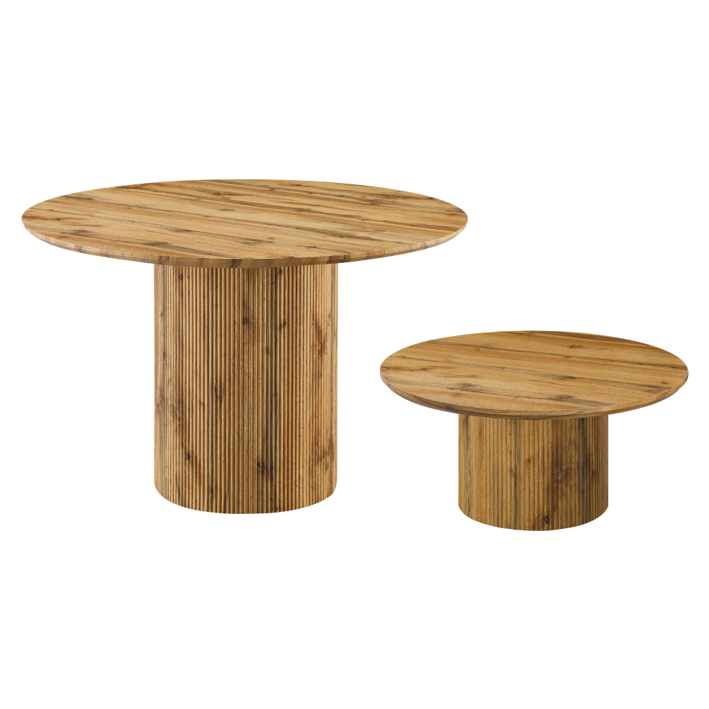 Materiál: dyhovaná MDFFarba: dubRozmery (PxV): 80x38 cmHrúbka platu stola: 2,5 cmNosnosť: 25 kgOriginálny kúsokOkrúhlyModerný a štýlovýDodávané v demonte