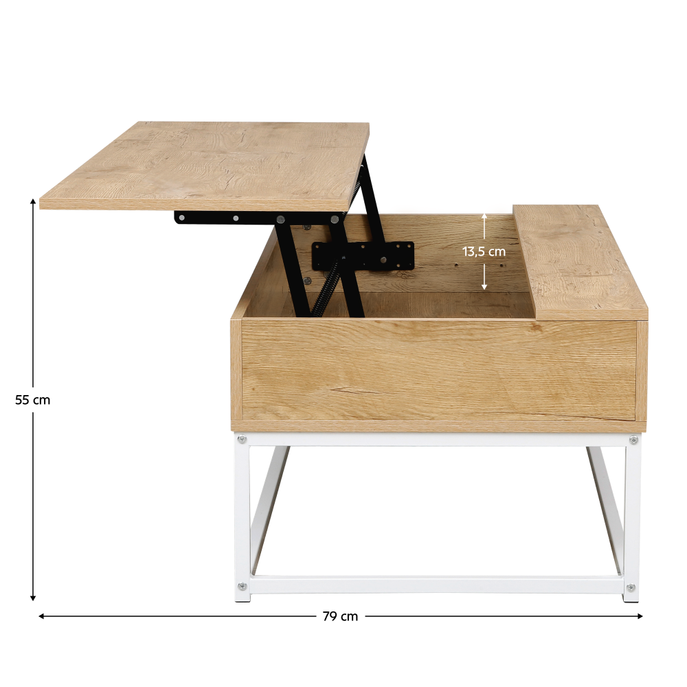 Materiál: DTD laminovaná/ kovFarba: dub/bielaRozmery (ŠxHxV): 100x55x40 cmRozmery v rozloženom stave (ŠxV): 79x55 cmHrúbka materiálu: 1,5 cmVýška spodného priestoru od podlahy: 23,5 cmVýškovo nastaviteľná vrchná doskaS ručným zdvíhacím mechanizmomS úložným priestorom pod vrchnou doskouNosnosť vrchnej dosky: 40 kgNosnosť vysunutej časti: 10 kgJednoduchý PraktickýModerný dizajnDodávané v demonte