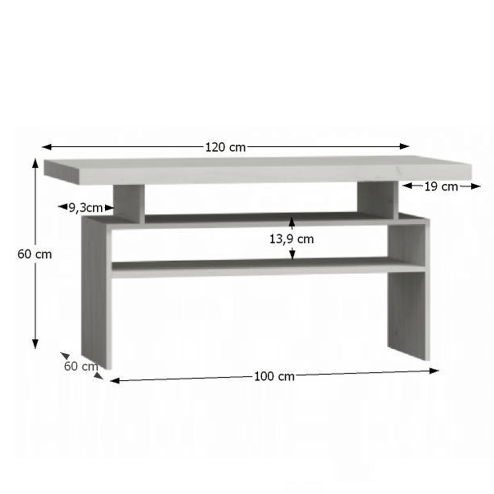 Konferenčný stolík 13 z luxusného sektorového nábytkuKorpus hrubý až 48 mm, hrúbka materiálu zvyšné časti: 16 mm, materiál DTD laminovaná, ABS hrany.Farebné prevedenie: jaseň biely, Rozmery ŠxHxV: 120x60x60 cm. Dodávané v demonte.