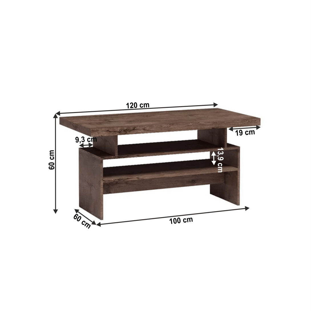 Konferenčný stolík 13 z luxusného sektorového nábytkuKorpus hrubý až 48 mm, hrúbka materiálu zvyšné časti: 16 mm, materiál DTD laminovaná, ABS hrany.Farebné prevedenie: jaseň tmavý, Rozmery ŠxHxV: 120x60x60 cm. Dodávané v demonte.