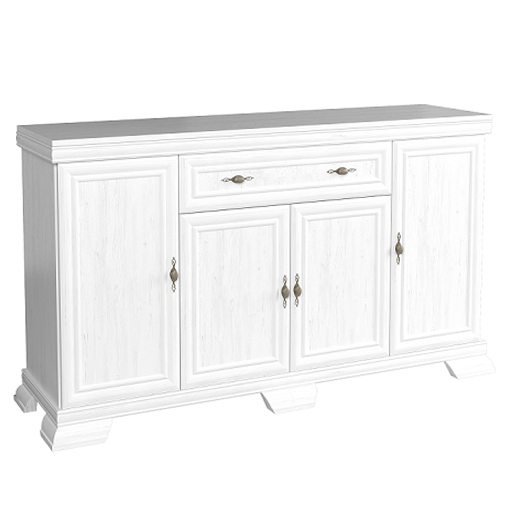 Komoda KK4 KORA. Farebné prevedenie sosna andersen. Materiál laminovaná DTD, MDF, kov.Rozmery (ŠxHxV): 168x46x97 cmHrúbka materiálu korpus:15 mmHrúbka materiálu vrchnej dosky:22 mm Hrúbka materiálu dolnej dosky:22 mmVýška spodného priestoru od podlahy: 10,5 cm