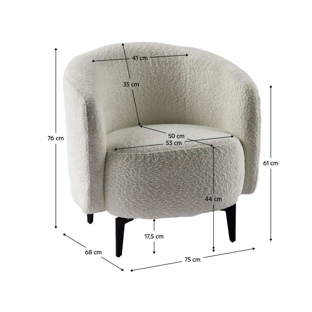 Materiál: látka Abriamo Bouclé 04Oderuodolnosť látky podľa testu Martindale: 45 000 oderovRozmery (ŠxHxV): 75x68x76 cmFarba čalúnenia: bielaVýplň: pružina falista+ PUR pena T30Materiál nohy: kovFarba nohy: čiernaVýška spodného priestoru od podlahy: 17,5 cmVýška chrbtovej opierky: 35 cmŠírka chrbtovej opierky: 41 cmVýška sedu: 44 cmHĺbka sedu: 50 cmŠírka sedu: 53 cmVýška opierky na ruky: 61 cmNosnosť: 120 kgDizajnovéCeločalúnenéŤažko zápalná textíliaDodávané v demonteMožnosť objednania v 6 farebných prevedeniach látky Abriamo Bouclé v cene 199 Eur. Pri individuálnej objednávke je potrebné zaplatiť 10% zálohu z danej sumy. Po uhradení zálohy bude Vaša požiadavka zadaná do výroby. Doba dodania 6-8 týždňov.