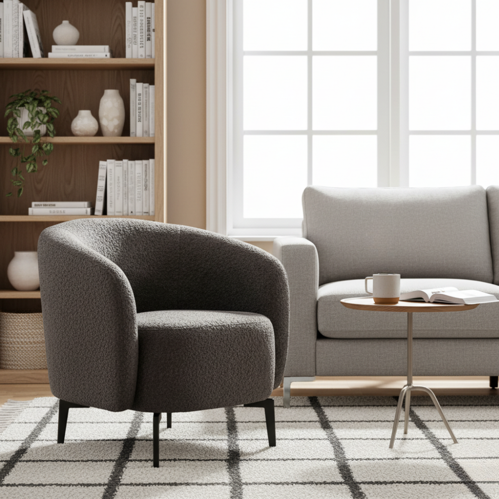 Materiál: látka Abriamo Bouclé 01Oderuodolnosť látky podľa testu Martindale: 45 000 oderovRozmery (ŠxHxV): 75x68x76 cmFarba čalúnenia: sivohnedá TaupeVýplň: pružina falista+ PUR pena T30Materiál nohy: kovFarba nohy: čiernaVýška spodného priestoru od podlahy:17,5 cmVýška chrbtovej opierky: 35 cmŠírka chrbtovej opierky: 41 cmVýška sedu: 44 cmHĺbka sedu: 50 cmŠírka sedu: 53 cmVýška opierky na ruky: 61 cmNosnosť: 120 kgDizajnovéCeločalúnenéŤažko zápalná textíliaDodávané v demonteMožnosť objednania v 6 farebných prevedeniach látky Abriamo Bouclé v cene 199 Eur. Pri individuálnej objednávke je potrebné zaplatiť 10% zálohu z danej sumy. Po uhradení zálohy bude Vaša požiadavka zadaná do výroby. Doba dodania 6-8 týždňov.