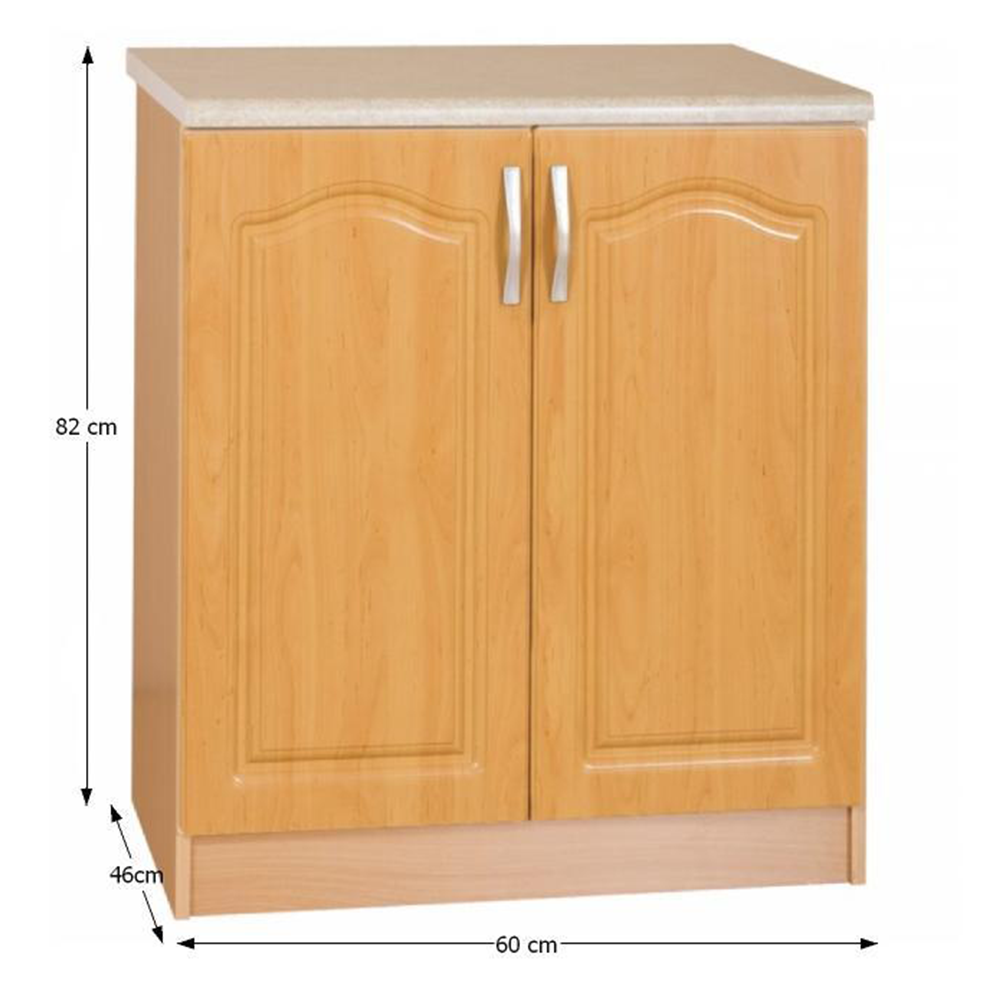 Materiál: DTD laminovaná/MDF fóliovanáFarba: jelšaRozmery (ŠxHxV):60x46x82 cmHrúbka materiálu: 16 mmDvojdverováJedna policaMožnosť objednať pracovnú doskuDodávané v demonteKu horným skrinkám je možné doobjednať ozdobnú lištu Koruna, cena za 1 bm je 19 Eur a na skrinku W60/60 je cena 19 Eur. . Cena spodných skriniek je bez pracovnej dosky. Možnosť dokúpiť pracovnú dosku za 49 Eur/bm. Ponúkame univerzálny Ľ/P drez LAY ON. Objednávku napíšte do poznámky v objednávke.