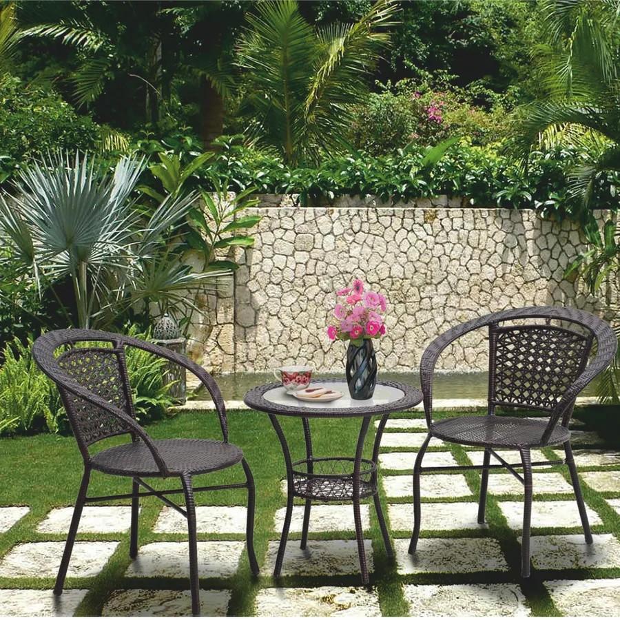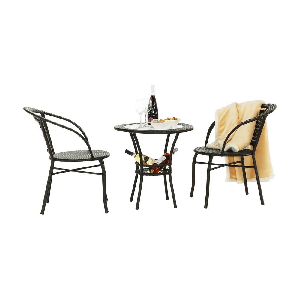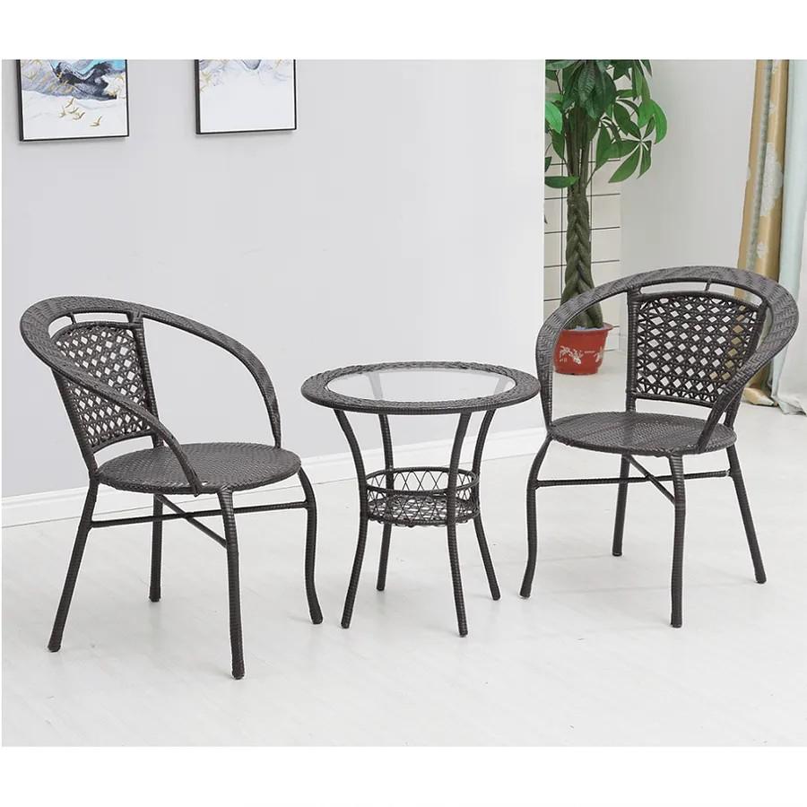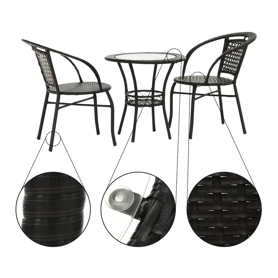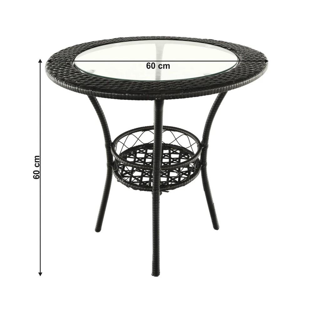 Záhradný ratanový set 1+2, Stôl (priemer x V): 60x60 cm, Kreslo (ŠxHxV): 65x62x77 cm, Materiál: umelý ratan/oceľ/tvrdené sklo