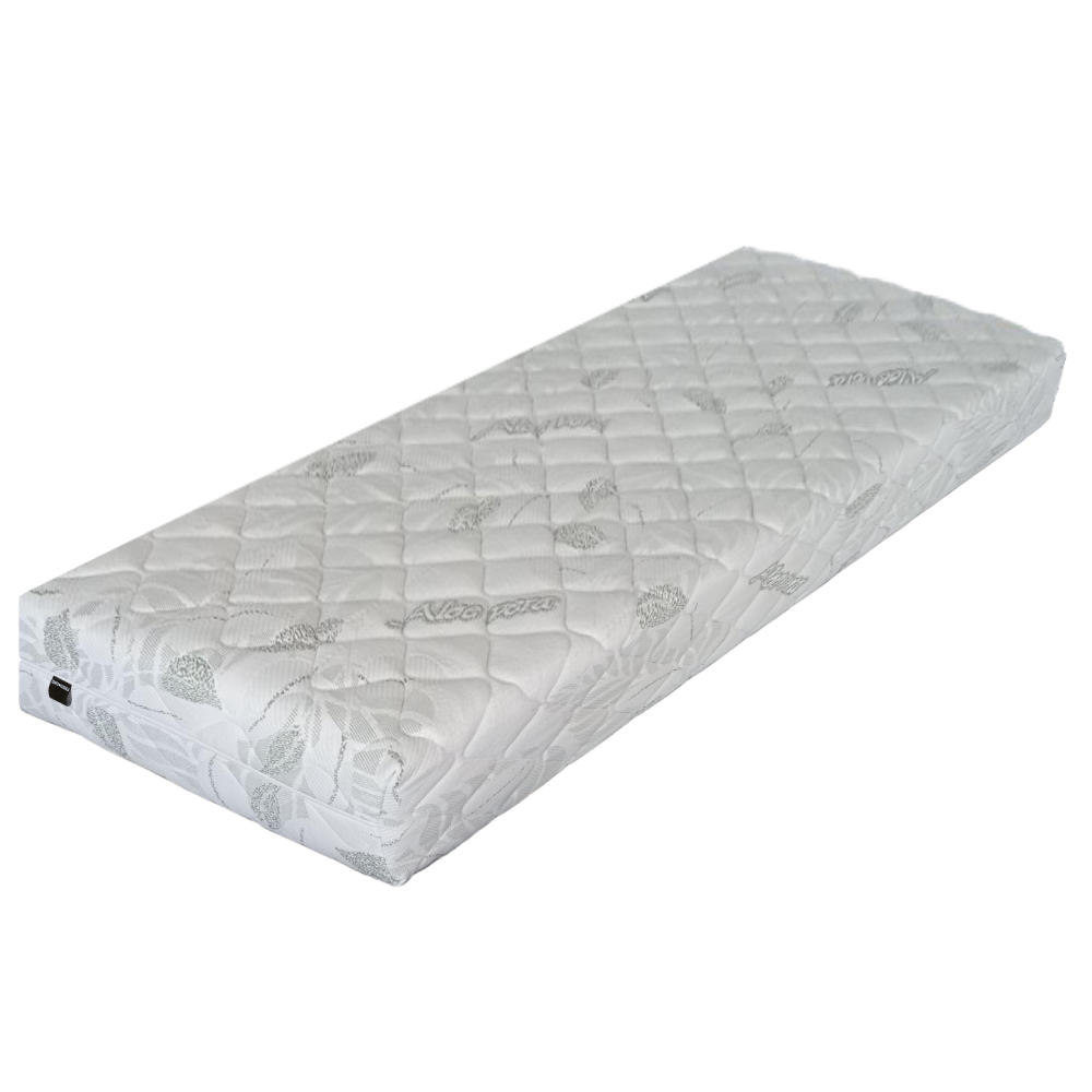 Materiál: studená pena, polyuretánová pena/elastická pena/poťahRozmery (ŠxD): bielaFarebné prevedenie: 90x195 cmVýška matraca: 18 cmNosnosť na osobu: 110 kgTvrdosť matracov: H3ObojstrannýPoťah z výťažkov Aloe VeraPoťah s certifikátom OEKO-TEX STANDARDSo zipsom po celom obvodeSnímateľnýPrateľný pri teplote do 40 °COdporúčame lamelový roštMinimálny počet lamiel 28Medzera medzi lamelami max. 6 cmMatrac je vákuovo balený, preto po jeho rozbalení ho odporúčame nechať na rovnom podklade 3-5 dní v pokoji, aby zregeneroval na deklarovanú výšku.