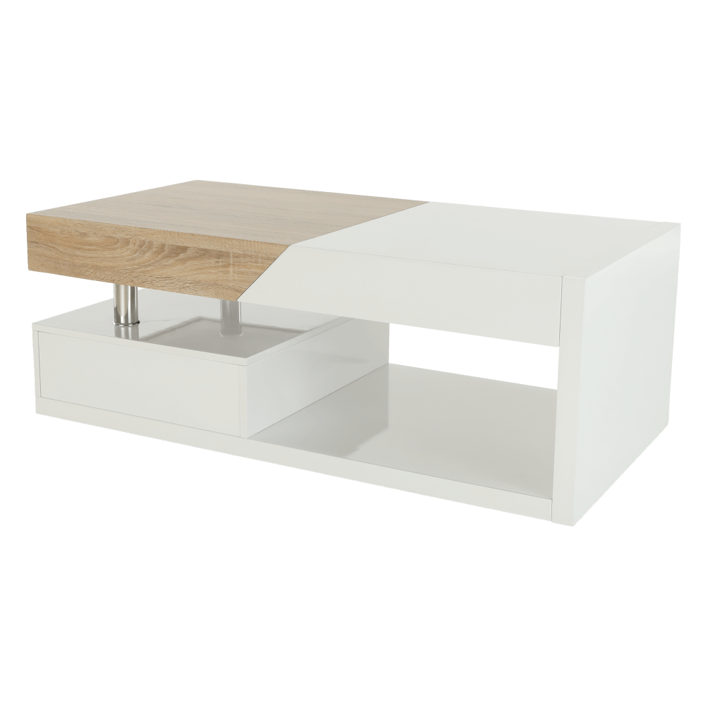 Konferenčný stolík MELIDAFarebné prevedenie: biela HG/ dub sonomaMateriál: MDF/kovRozmery (ŠxHxV): 120x60x43 cmHrúbka materiálu: 12 mm Dodávané v demonte.