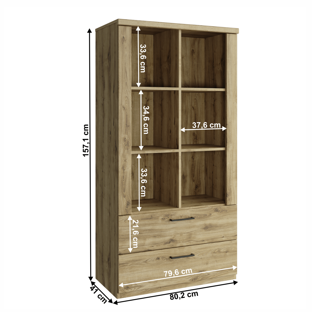 Nízky regál DORSI 2SMateriál: DTD laminovaná/MDFFarba: dub navarraRozmery (ŠxHxV): 80,2x41x157,1 cmHrúbka materiálu: 1,6 cmOtvorenýPolicovýDva šuplíkyRozmer šuplíkov (ŠxV): 79,6x21,6 cmPlastové úchytkyFarba úchytiek: čiernaNosnosť: 5 kgModerný dizajnDodávané v demonte