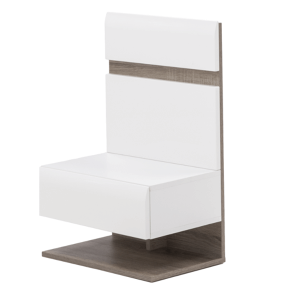KONDELA Nočný stolík, biela extra vysoký lesk HG/dub sonoma tmavý truflový, LYNATET TYP 95