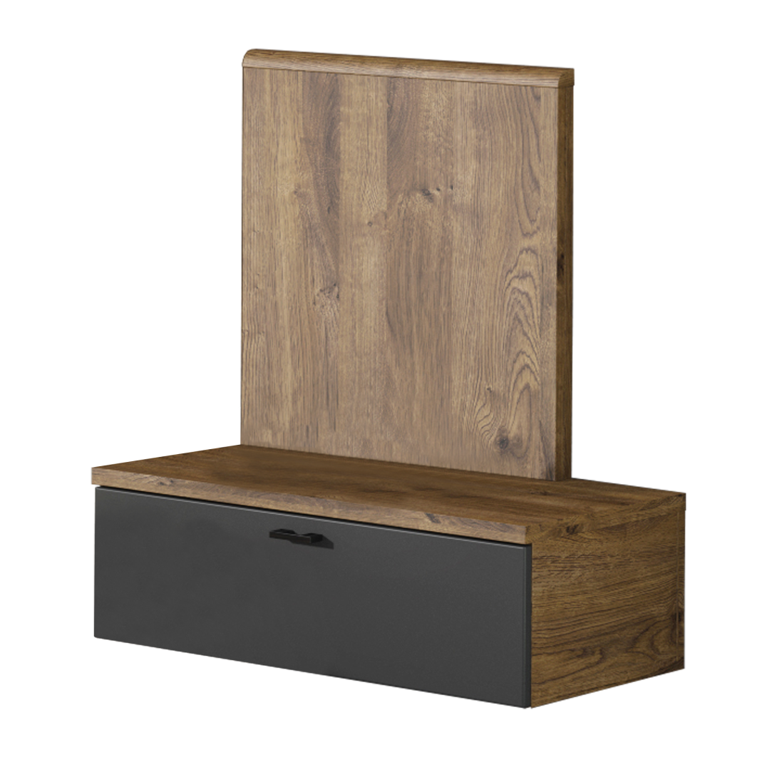 Nočný stolík ARMENY 8XX3AT1PMateriál: DTD laminovanáFarba: dub ribeck/tmavý grafitRozmery (ŠxHxV): 60x38x74 cmHrúbka materiálu: 1,6 cmPravé prevedenieJeden šuplíkNosnosť: 3 kgNosnosť šuplíka: 5 kgS úchytkamiMateriál úchytiek: kovFarba úchytiek: čiernaModerný dizajnDodávané v demonte
