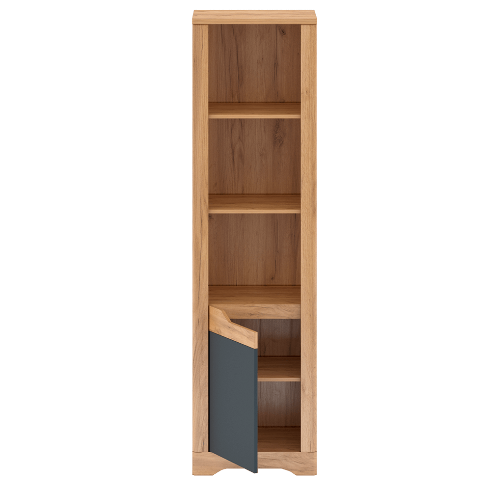 Materiál: DTD laminovaná/MDFFarba: dub craft zlatý/grafit siváRozmery (ŠxHxV): 54,7x42x200,5 cmHrúbka materiálu korpus: 16 mmHrúbka materiálu vrchná doska: 22 mmOtvorený úložný priestorPoliceJedna skrinkaĽavé prevedenieDodávané v demonte