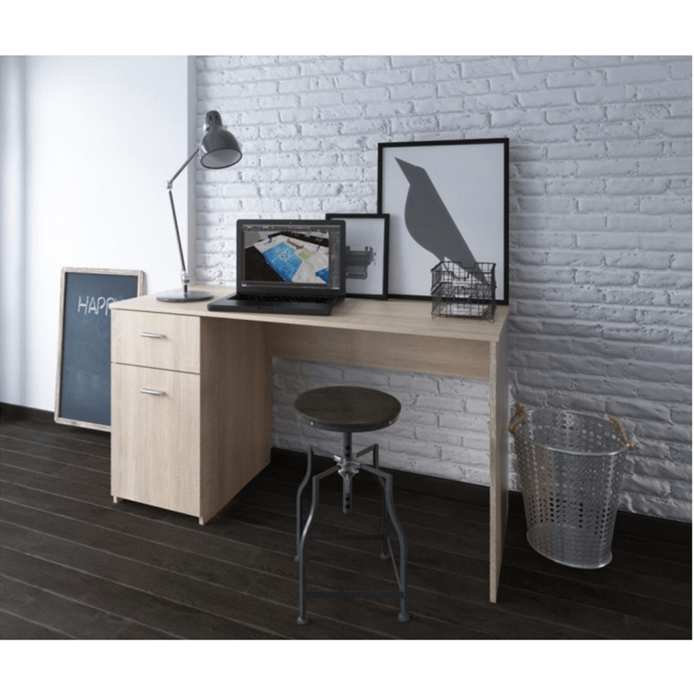 Pc stôl so šuplíkom a skrinkou BANYMateriál: DTD laminovanáFarba: dub sonomaRozmery (ŠxHxV): 140x60x76 cmHrúbka materiálu korpus: 16 mmDodávané v demonte.