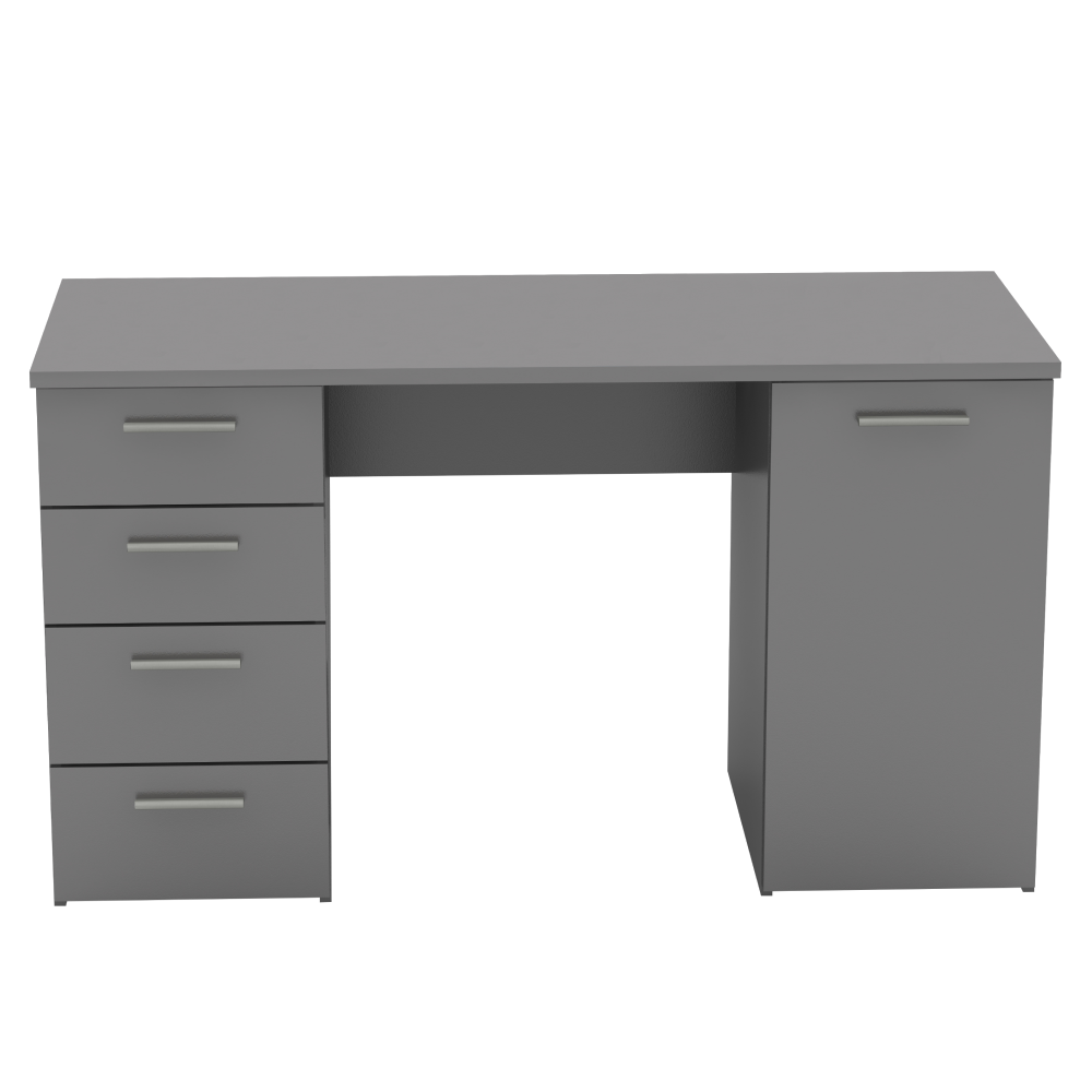 PC stôl EUSTACHMateriál: DTD laminovanáFarba: grafitHrúbka materiálu: 16/22 mmRozmery (ŠxHxV): 137x60x76,3 cmRozmery skrinky (ŠxHxV): 37,8x60x76,3 cmŠtyri šuplíky, jedna skrinkaVýška plytších šuplíkov: 16 cmVýška hlbších šuplíkov: 19,4 cmDodávané v demonteKvalitný slovenský výrobok