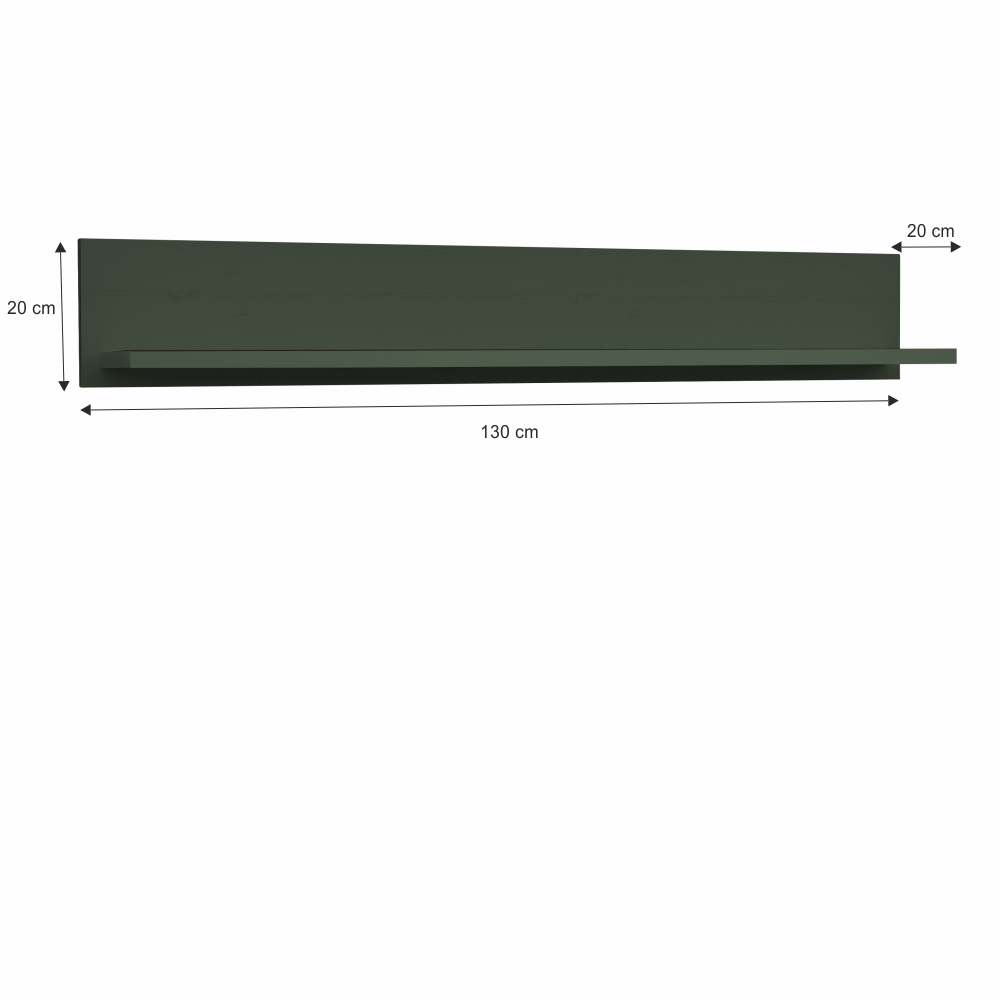 Materiál: DTD laminovanáFarba: zelenáRozmery (ŠxHxV): 130x20x20 cmHrúbka materiálu korpus: 15 mmOtvorený úložný priestorDodávané v demonte.