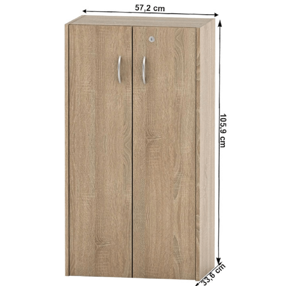 Materiál: laminovaná DTDZámok je na dveráchFarba: dub sonomaRozmery (ŠxHxV): 57,2x33,6x105,9 cmHrúbka materiálu korpus: 16 mmPridaný zámokKovové úchytkyDvojdverováS úložným priestoromKvalitný slovenský výrobokDodávané v demonte