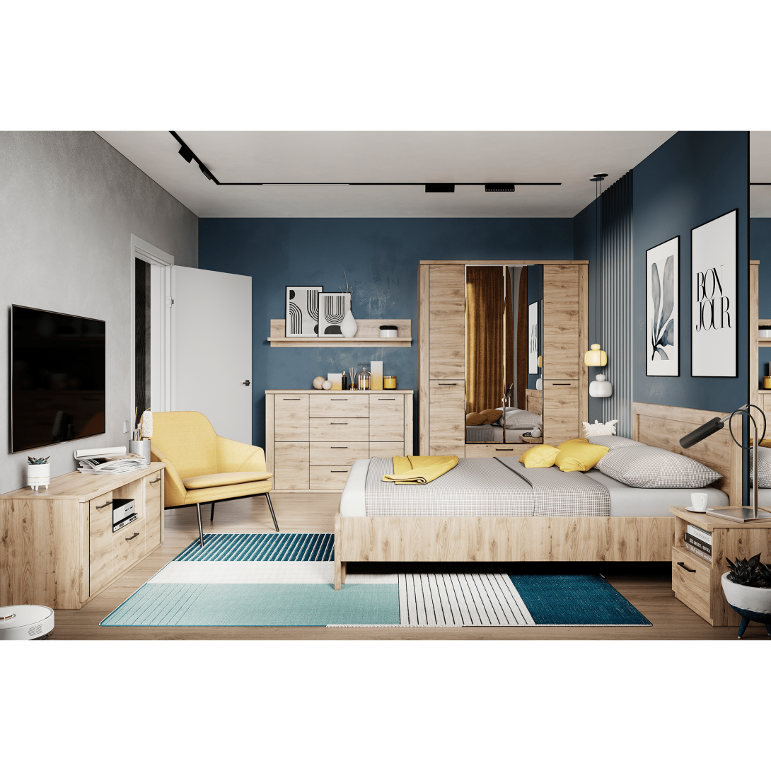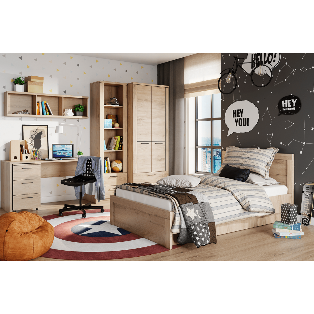 Posteľ DORSI 120Materiál: DTD laminovaná/MDFFarba: dub navarraRozmery (ŠxHxV): 127,3x206,9x89,5 cmPlocha na spanie (ŠxD): 120x200 cmHrúbka materiálu: 1,6 cmVýška spodného priestoru od podlahy: 14,5 cmOdporúčaná výška matraca: min 4 cmVýška bočnice: 37,4 cmNosnosť na lôžko: 100 kgBez úložného priestoruDodávané bez matraca a roštuMožnosť dokúpiť rošt a matrac z našej ponukyModerný dizajnDodávané v demonte