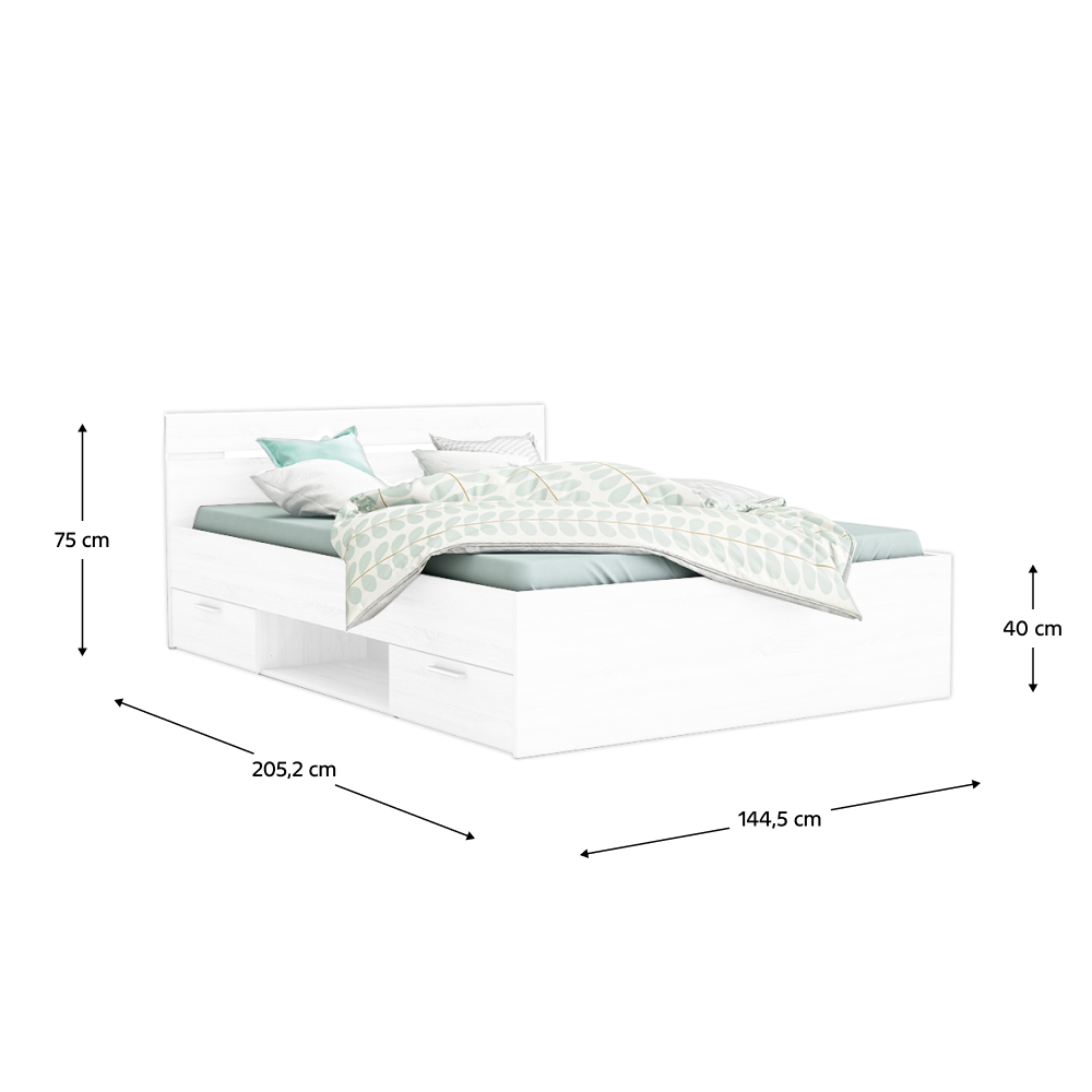 Posteľ MICHIGAN NEW so šuplíkmi a s odkladacím priestorom.Materiál: DTD laminovaná.Farebné prevedenie: bielaRozmery (ŠxHxV): 144,5x205,2x75 cmPlocha na spanie: 140x200 cm.Výška spania: 40 cmVýška po rošt: 26 cmVýška matraca: 15 cm Nosnosť: 2x100 kgŠírka čelnej dosky šuplíka: 60 cmHrúbka čelnej dosky šuplíka: 1,5 cmVnútorný rozmer šuplíka s rámom (ŠxH): 58x35 cmÚložný priestor šuplíka (ŠxH): 55,5x33,5 cmVýška vnútorného priestoru šuplíka: 10,5 cmOba šuplíky sú rovnakej veľkostiK posteli je možné zakúpiť rošt v pevnom ráme 140x200 a matrac s rozmerom 140x200 cm na základe našej ponuky.