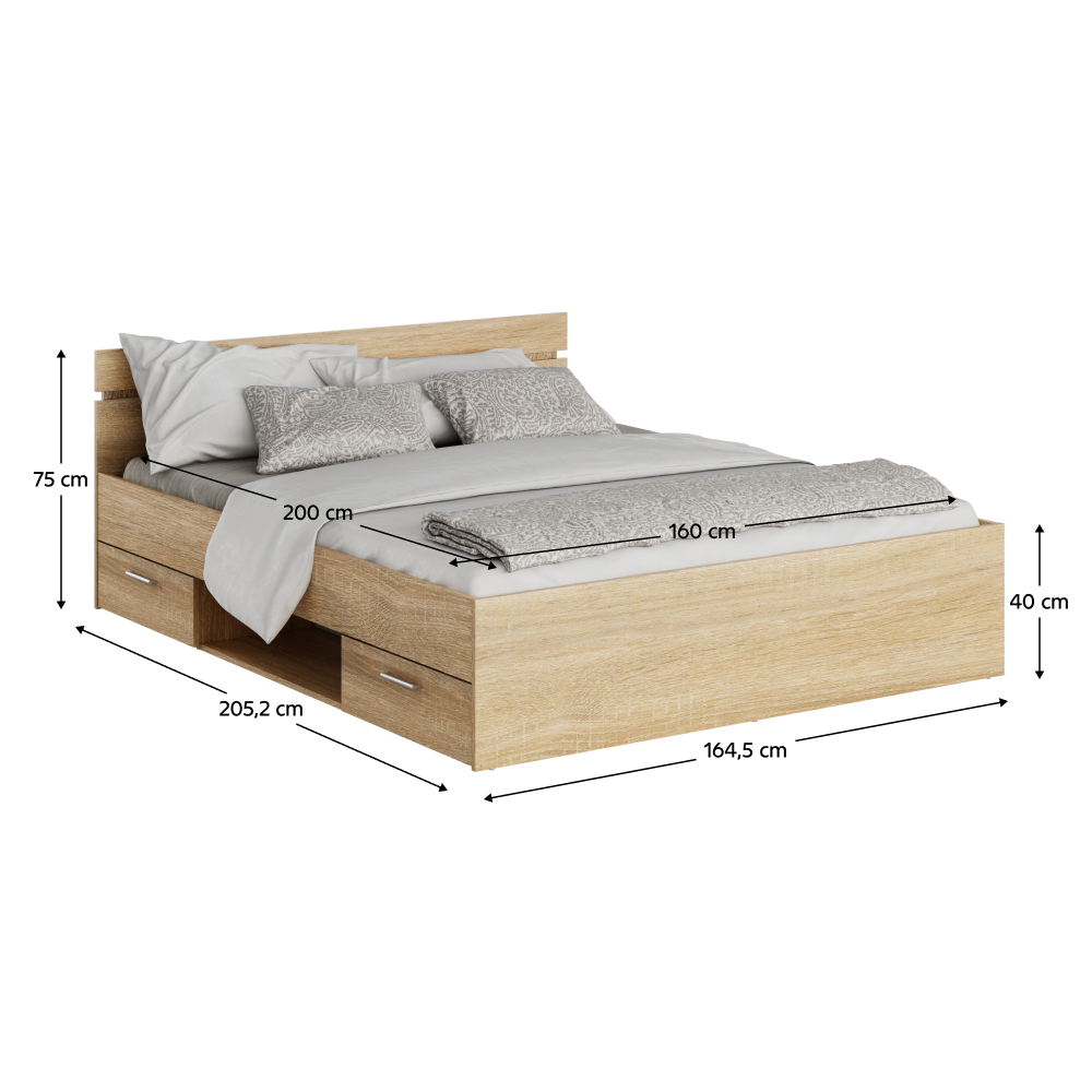Posteľ MICHIGAN NEW so zásuvkami a s odkladacím priestorom.Materiál: DTD laminovaná.Farebné prevedenie: dub sonomaRozmery (ŠxHxV): 164,5x205,2x75 cmPlocha na spanie: 160x200 cm.Výška spania: 40 cmVýška po rošt: 26 cmVýška matraca: 15 cm Nosnosť: 110 kgK posteli je možné zakúpiť rošt v pevnom ráme 160x200 a matrac s rozmerom 160x200 cm na základe našej ponuky.