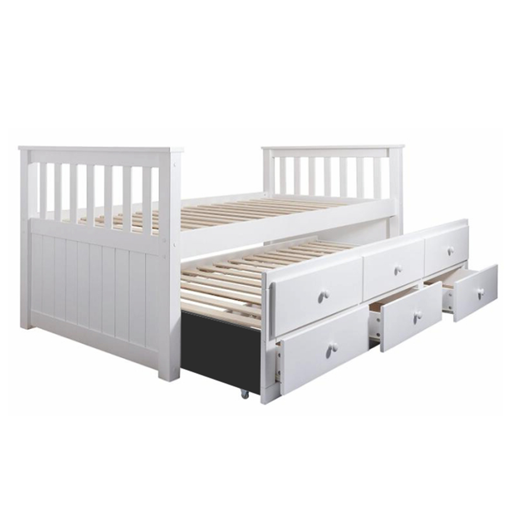 KONDELA Posteľ s prístelkou a úložným priestorom, kaučukové drevo/biela, AUSTIN NEW