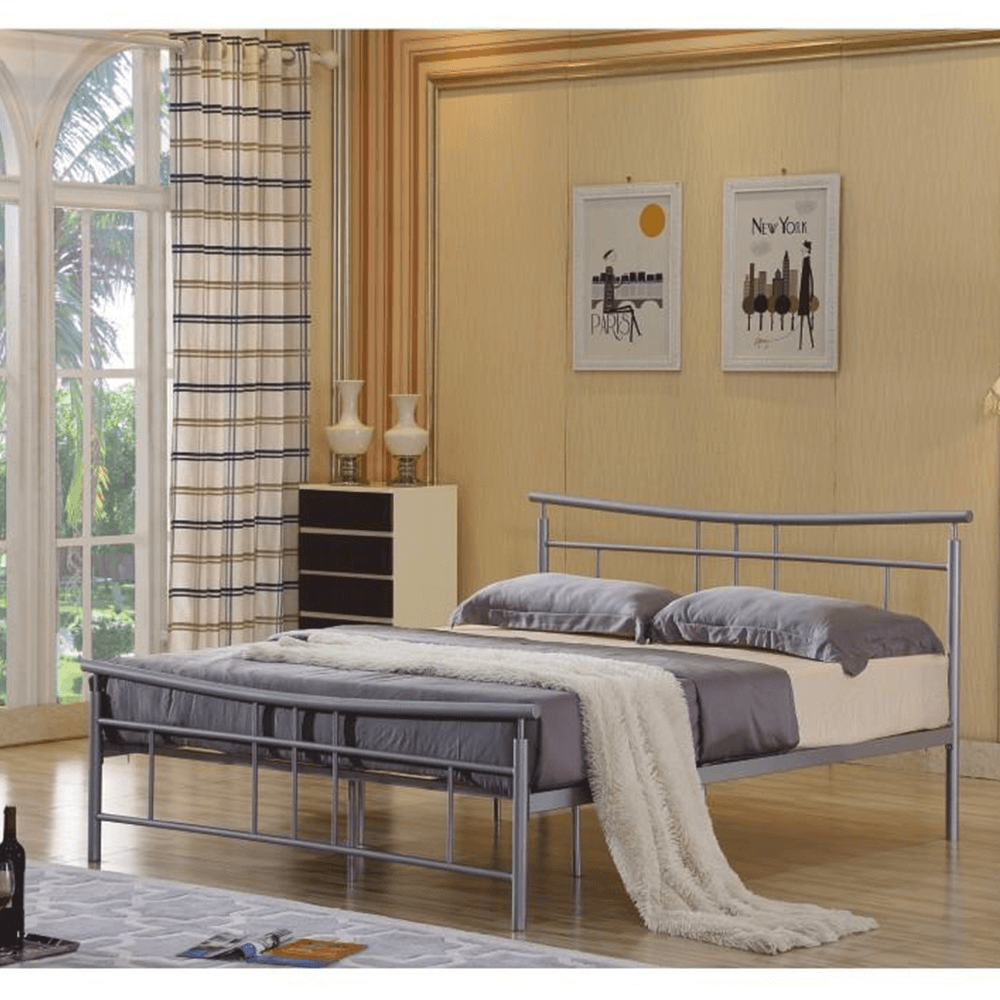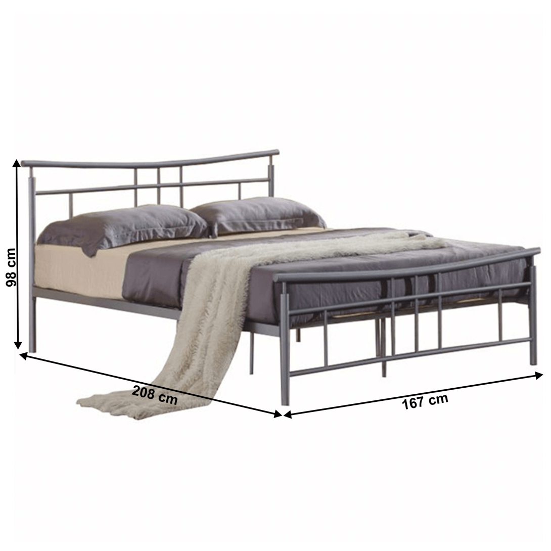 Kovová posteľ s rolovaným roštom DORADO NEWVonkajšie rozmery (ŠxHxV): 167x208x98 cmPlocha na spanie (ŠxH): 160x200 cmNosnosť na jedno lôžko: 100 kgMateriál: kovFarba: matná striebornáMožnosť zakúpiť matrac z našej ponukyDodávané v demonte.