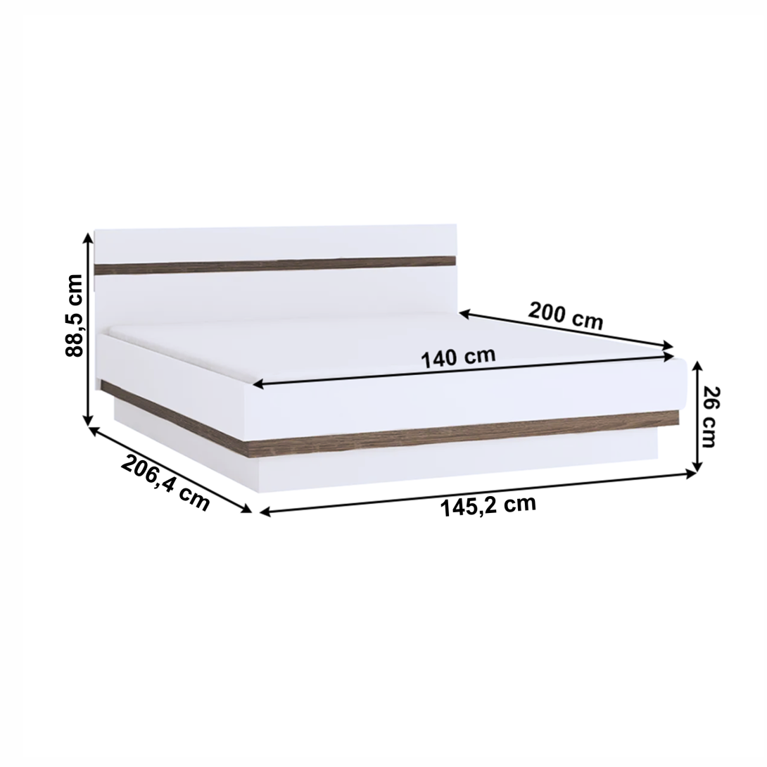 Posteľ 140 LYNATET 97Materiál: laminovaná DTD/laminovaná MDFFarba: dub sonoma truflový/biela s extra vysokým leskomRozmery (ŠxHxV): 145,2x206,4x88,5 cmPlocha na spanie (ŠxD): 140x200 cmVýška po rošt: 26 cmHrúbka materiálu: 16 mmNosnosť: 110 kgModerné zaoblené hranyKorpus je v matnom prevedeníČelo postele je v prevedení extra vysoký leskBez matracaS roštomMožnosť dokúpenia matraca z našej ponukyOdporúčame zakúpiť matrac s minimálnou výškou 20 cmS úložným priestoromNa objednávkuDodacia lehota je 8-10 týždňovDodávané v demonte