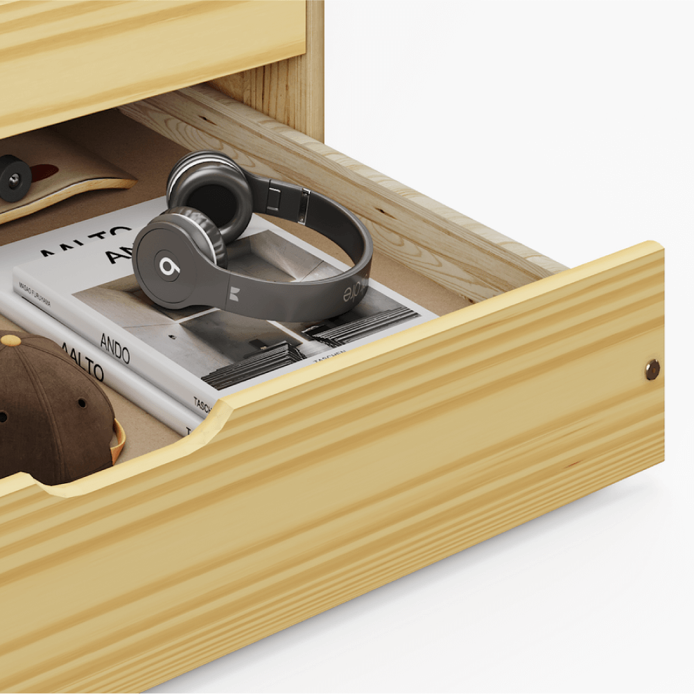 Materiál: borovicové drevoFarba: prírodnáRozmery (ŠxHxV): 205x98x63 cm Rozmery lôžka: 90x200 cmNosnosť na každé lôžko: 120 kgVýška po rošt - prístelka: 25,6 cmVýška po rošt - horné lôžko: 41,4 cmVýsuvná prístelkaPrístelka: rošt sololitPrístelka na kolieskachRozmer matraca na prístelku: 90x194 cmS latkovými roštami (prístelka sololit)Tri šuplíkyÚložný priestorDodávané bez matracovVýška spania: 48 cmVýška matraca na prístelku: 10 cmMaximálna výška matraca: 18 cmOdporúčame zakúpiť matrace z našej ponukyDodávané v demonte