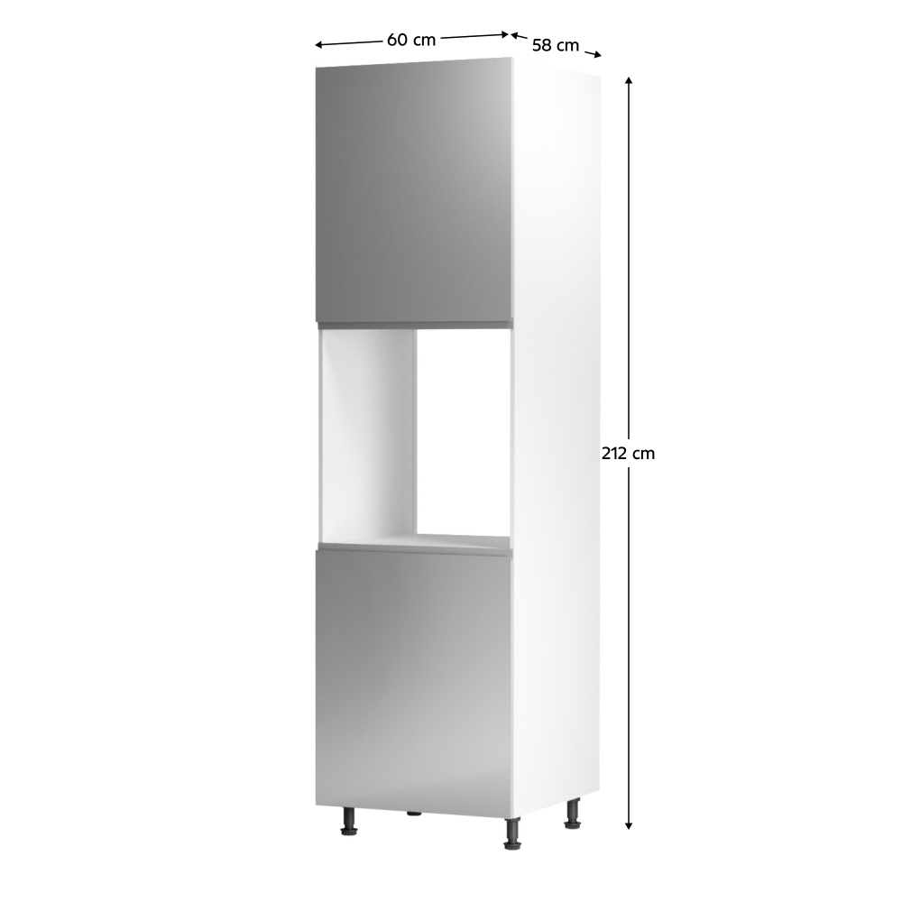 Materiál: DTD laminovaná/MDFFarba: biela/sivá extra vysoký leskRozmery (ŠxHxV): 60x58x212 cmVnútroný rozmer na rúru (ŠxHxV): 57x56x59,5 cmHrúbka materiálu: 15 mmSystém tichého zatvárania dvierokDodávane s kovovým košom s kovaníme nutné objednať potrebný počet ukončení spodnej lištySpodnú lištu je potrebné objednať zvlášť, pričom daný rozmer treba uviesť do poznámkyPotrebné doobjednať 2 ks úchytov na sokel Ľavé prevedenieDodávané v demontePracovná doska nie je súčasťou skriniek. Je možné si doobjednať pracovnú dosku v prevedení dub artisan s hrúbkou 38 mm za 56 eur/bm. Možnosť dokúpiť drez LAY ON. Spodné skrinky sú dodávané vrátane dolnej lišty, avšak presný rozmer, ktorý potrebujete, je potrebné uviesť do poznámky v objednávke. Ak rozmer neuvediete, môže sa stať, že vám sokel nebude dodaný. Ku každej dolnej skrinke, okrem D25PZ, je potrebné doobjednať 2 ks úchytok na sokel - cena 1Eur/2ks.
