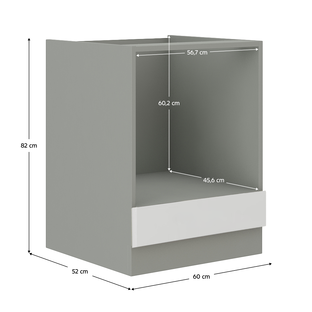 Dolná skrinka, Materiál: DTD laminovaná, Prevedenie: biela vysoký lesk, Rozmery ŠxVxH: 60x82x52 cm. Vnútorný rozmer (ŠxHxV): 56,7x45,6x60,2 cmJe určená na zakomponovanie sporáka do kuchynskej linky. Dodávané v demonte.Bez pracovnej dosky.Sektorové skrinky sú dodávané bez pracovnej dosky vrátane spodnej lišty. Možnosť dokúpiť PD metalic brown v cene 55 Eur/1m. Možnosť dokúpiť univerzálny Ľ/P drez LAY ON.