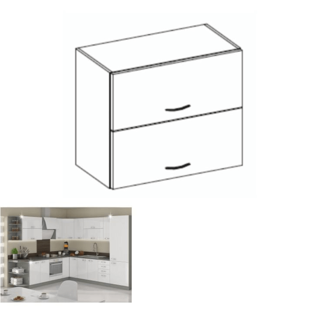 Horná skrinka 80 GU 72 Materiál: DTD laminovaná/MDF/kovPrevedenie: biela extra vysoký lesk/siváRozmery (ŠxHxV): 80x31x71,5 cmKorpus sivej farbyKovové úchytkyDvierka extra vysoký lesk HGSystém tichého zatvárania dvierokSystém tichého dorazu zásuviekDodávané v demonteSektorové skrinky sú dodávané bez pracovnej dosky vrátane spodnej lišty. Možnosť dokúpiť PD metalic brown v cene 55 Eur/1m. Možnosť dokúpiť univerzálny Ľ/P drez LAY ON.