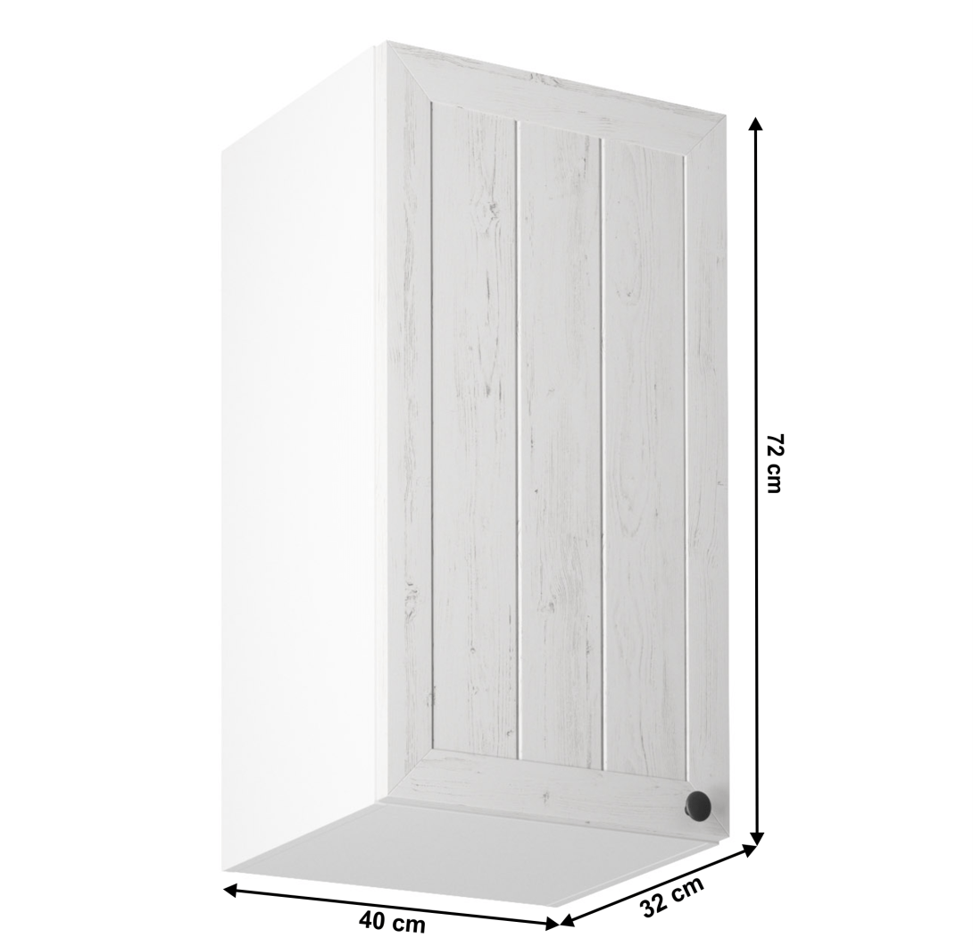 Horná, ľavá skrinka s dvierkami a jednou policou ku kuchyni PROVANCEPrevedenie: DTD laminovaná/MDFFarba: biely/sosna andersenRozmery (ŠxHxV): 40x32x72 cmHrúbka materiálu: 15 mmSystém tichého zatvárania dvierokCena sektorových skriniek je uvádzaná bez pracovnej dosky a spodnej lišty. Cena za pracovnú dosku dub lancelot je 56 Eur/bm - hrúbka 38 mm, cena za spodnú lištu je 14 Eur. Ku každej dolnej skrinke okrem D25PZ, je potrebné doobjednať 2 ks úchytov na sokel cena 1 Eur/2 ks.