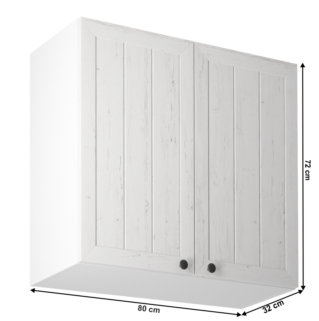 Horná skrinka s dvoma dvierkami a jednou policou ku kuchyni PROVANCEPrevedenie: DTD laminovaná/MDFFarba: biely/sosna andersenRozmery (ŠxHxV): 80x32x72 cmHrúbka materiálu: 15 mmSystém tichého zatvárania dvierokCena sektorových skriniek je uvádzaná bez pracovnej dosky a spodnej lišty. Cena za pracovnú dosku dub lancelot je 56 Eur/bm - hrúbka 38 mm, cena za spodnú lištu je 14 Eur. Ku každej dolnej skrinke okrem D25PZ, je potrebné doobjednať 2 ks úchytov na sokel cena 1 Eur/2 ks.