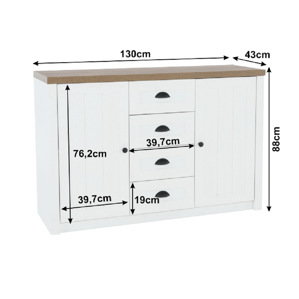Komoda PROVANCE vo farebnom prevedení sosna andersen/dub lefkas. Materiál laminovaná DTD.Rozmery (ŠxHxV: 130x43x88 cmHrúbka materiálu korpus: 15 mmHrúbka materiálu vrchnej dosky: 36 mm Dodávané v demonte.