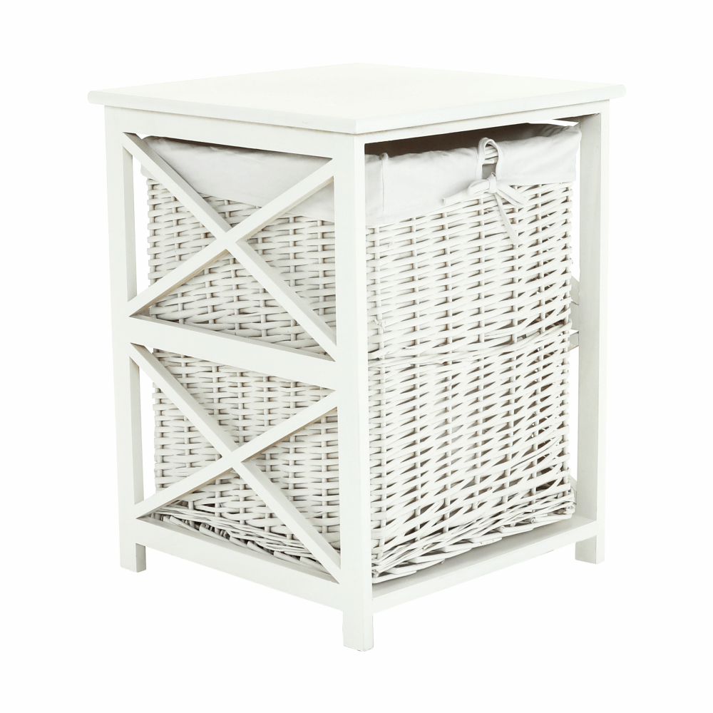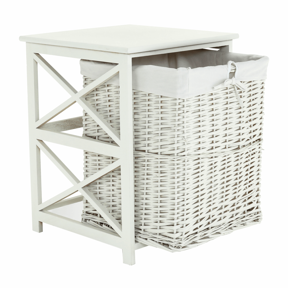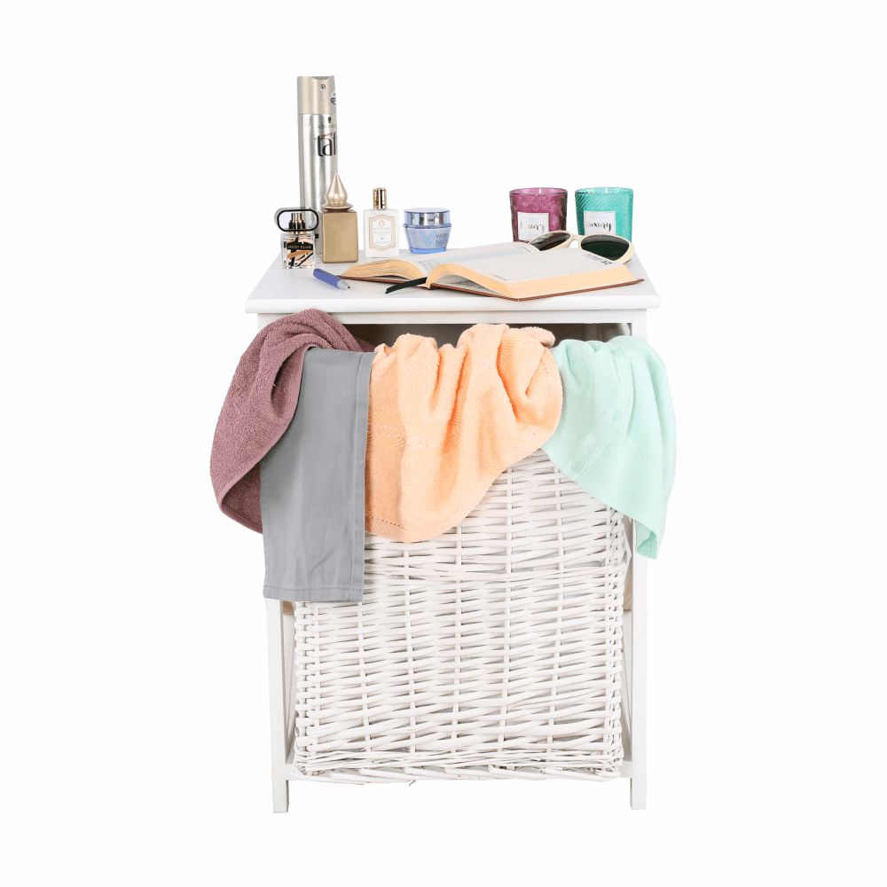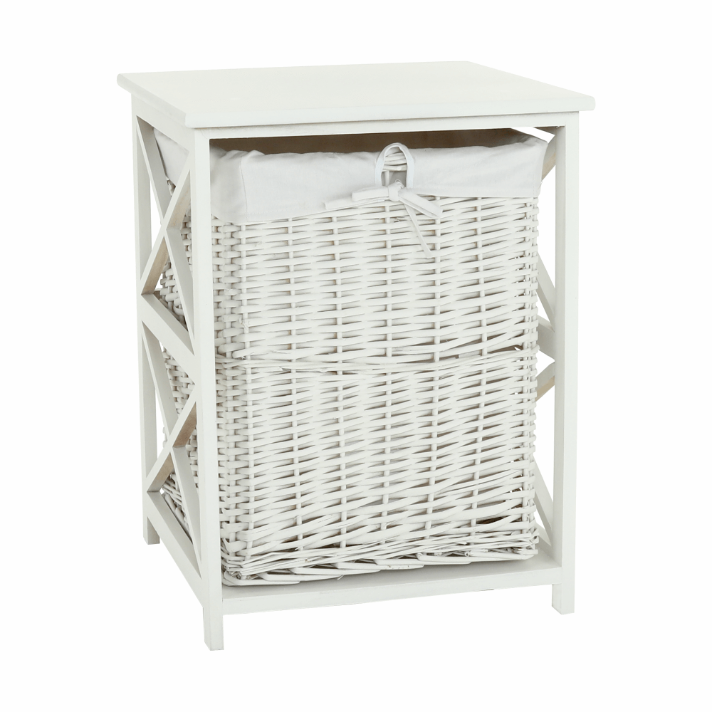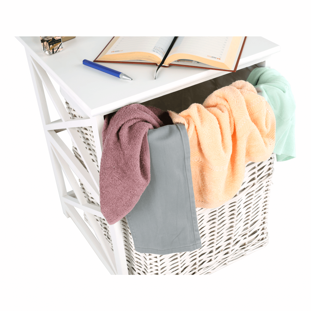 Kôš na bielizeň RAFAELLO Materiál: prútie/drevo/látkaFarba: bielaRozmery (ŠxHxV): 46x46x60 cmDodávané v monte.