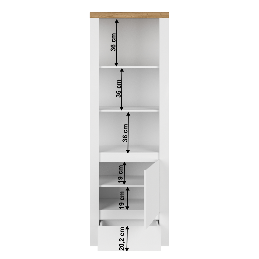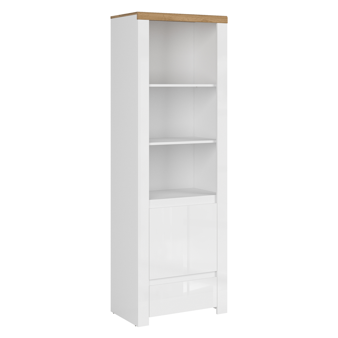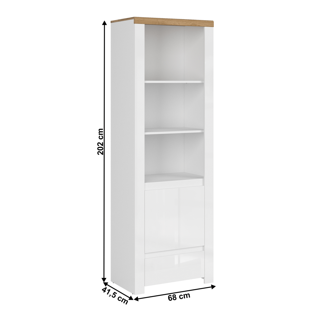 KONDELA Regál 1D1S, biely lesk/dub wotan, VILGO