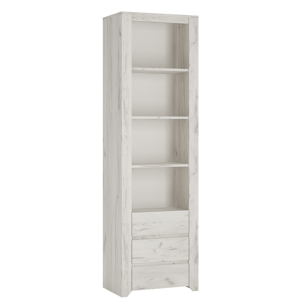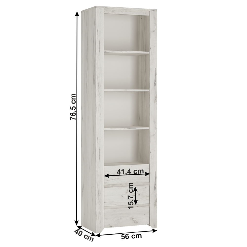 Regál TYP 11 zo sektorovej zostavy ANGEL, regál so 4 policami a tromi šuplíkmiMateriál: laminovaná DTD Farba: biela craft Rozmery (ŠxHxV): 56x40,2x190,5 cm Výška spodného priestoru od podlahy: 2,5 cmDodávané v demonte
