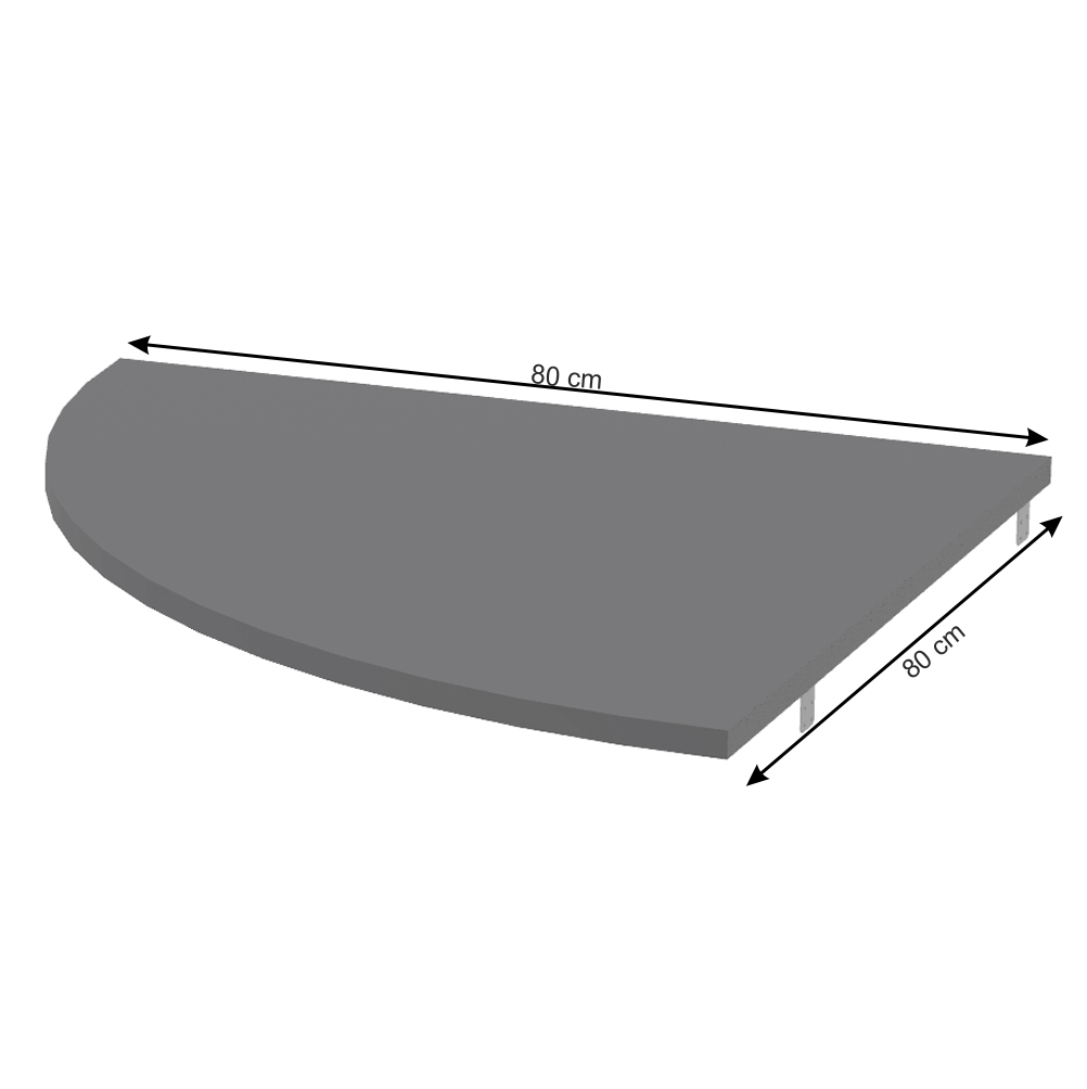 Roh RIOMA NEW TYP 13 k písacím stolom TYP 11 a 12.Sektor vhodný na zariadenie kancelárii, pracovní, školských učební alebo zasadacích miestností, Materiál: DTD laminovaná, hrúbka lamina 22 mm. Farebné prevedenie: grafit, Rozmery (ŠxVxH): 80x2,2x80cm.Hrúbka materiálu: 22 mmMožnosť vyskladania si zostavy podľa vlastných predstáv. Dodávané v demonte.