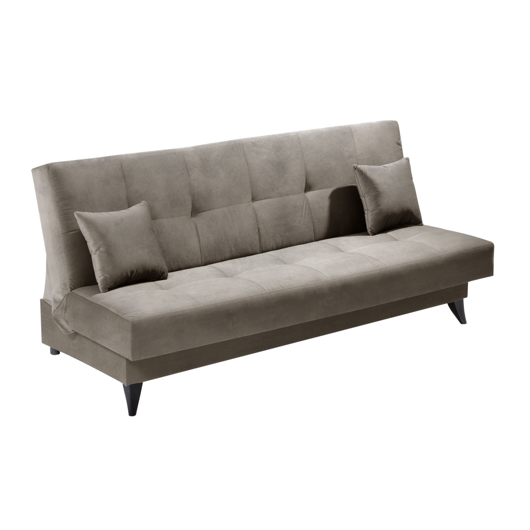 Materiál: látka Asti 03Oderuodolnosť textílie podľa testu Martindale: 90 000 oderovFarba: sivobéžová TaupeRozmery (ŠxHxV): 199x91x92 cm Plocha na spanie (ŠxD): 116x199 cm Výška sedu: 46 cmHĺbka sedu: 55 cmRozkladaciaS úložným priestoromNosnosť na osobu: 90 kgVýška spodného priestoru od podlahy: 13 cm2 dekoratívne vankúšikyRozmer vankúšov (ŠxH): 37x37 cmPlastové nožičkyFarba nožičiek: čiernaVýplň: bonelová pružina/pur penaDodávané v demonte