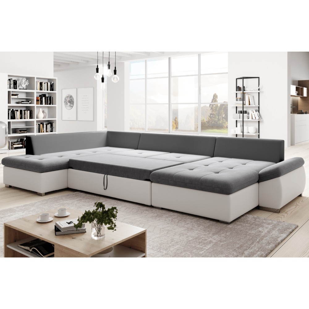 KONDELA Rozkladacia sedacia súprava, biela/sivá, ľavá, MATAR U