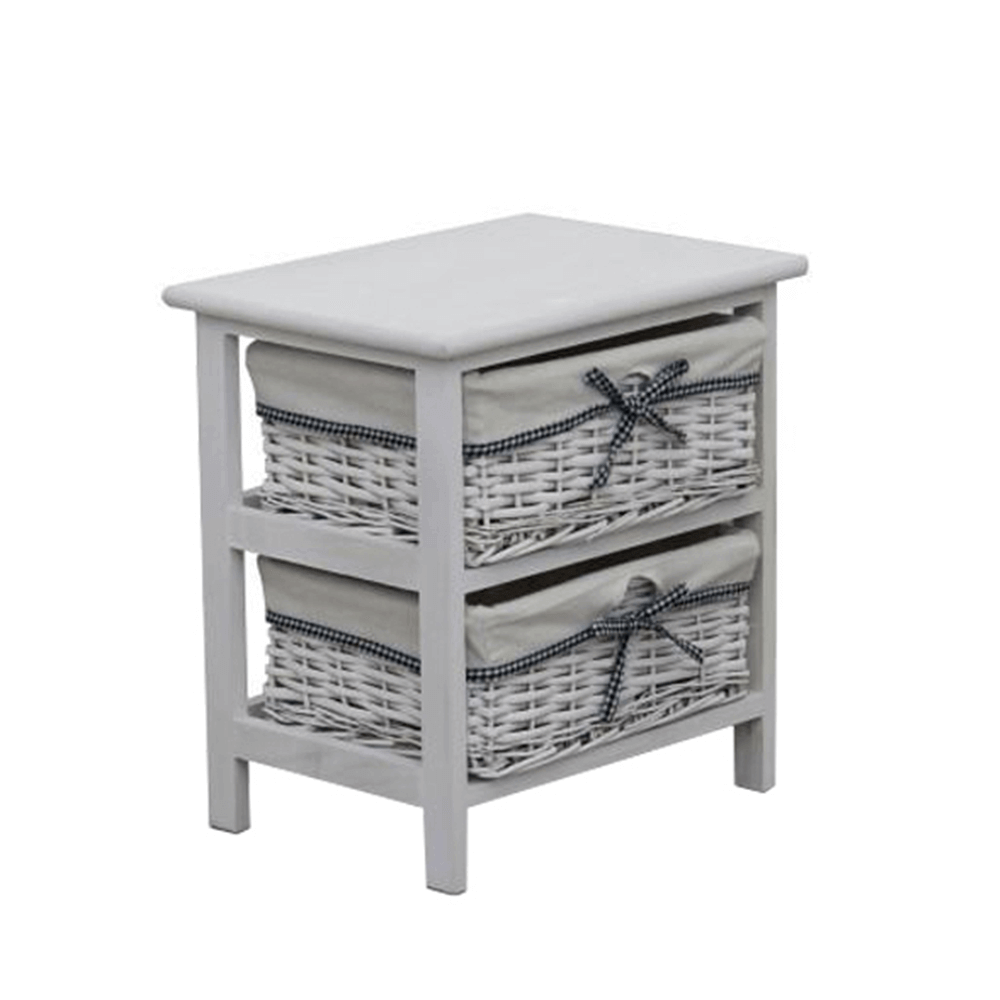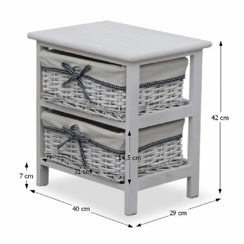 Komoda ( prípadne nočný stolík ) s pevným rámom a 2 prútenými košíkmi,Materiál drevo / prútie,Rozmery ( ŠxVxH ) 40x42x29 cm.