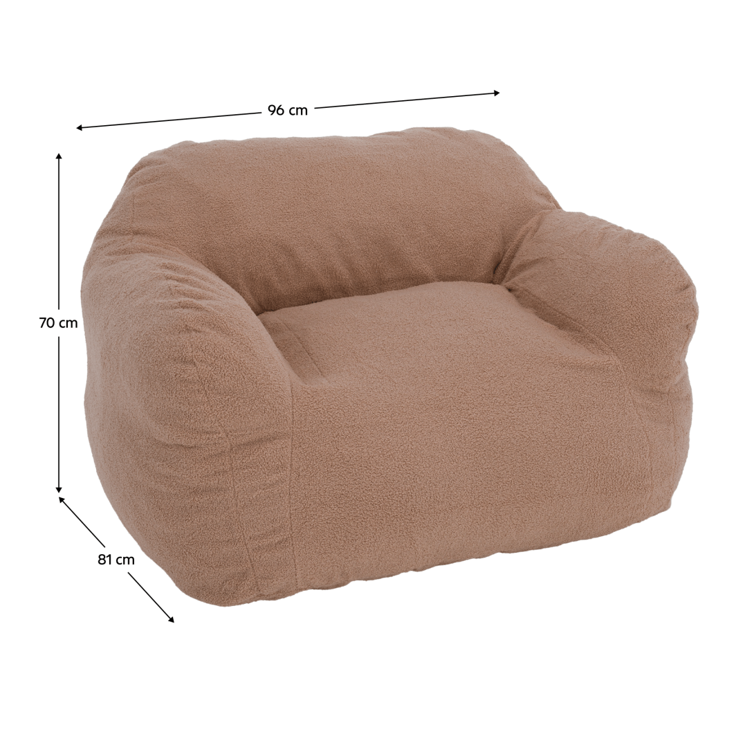 Materiál: látka Bouclé/kompresná penaOderuodolnosť textílie podľa testu Martindale: 45 000 oderovFarba: svetlohnedáRozmery (ŠxHxV): 96x81x70 cmPraktické uško na zadnej stranePríjemný materiálVýplň je zdravotne nezávadnáĽahká údržbaČistenie mydlovou vodou s nízkym phOdporúčame otvoriť penu a nechať ju dosiahnuť svoj objem 24 hodínNosnosť: 90 kg