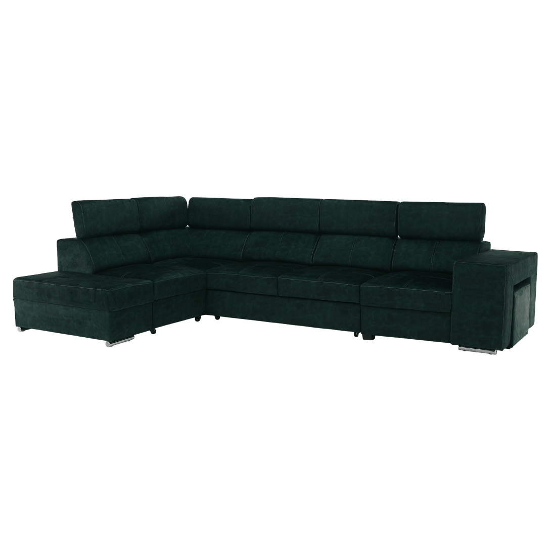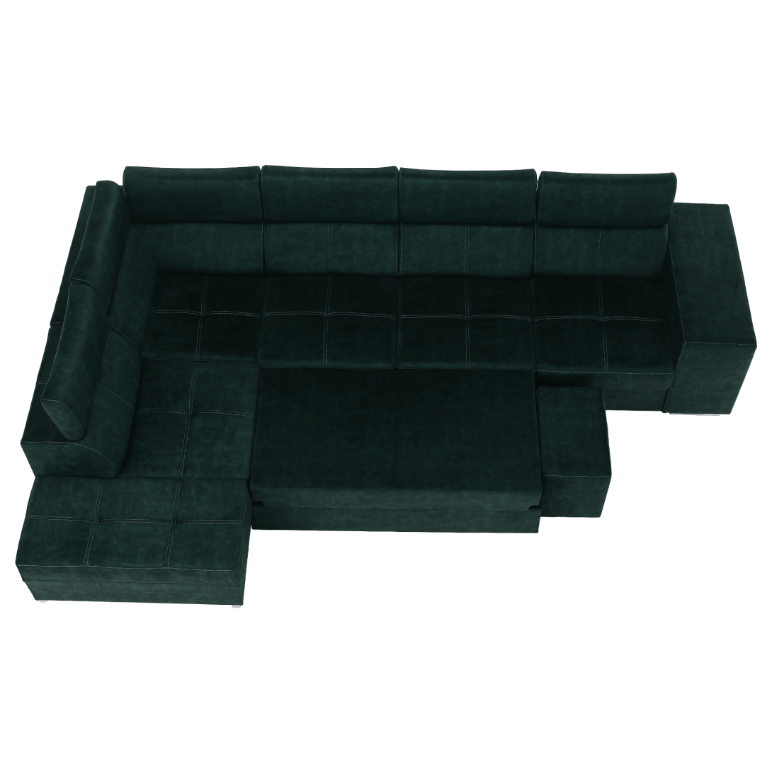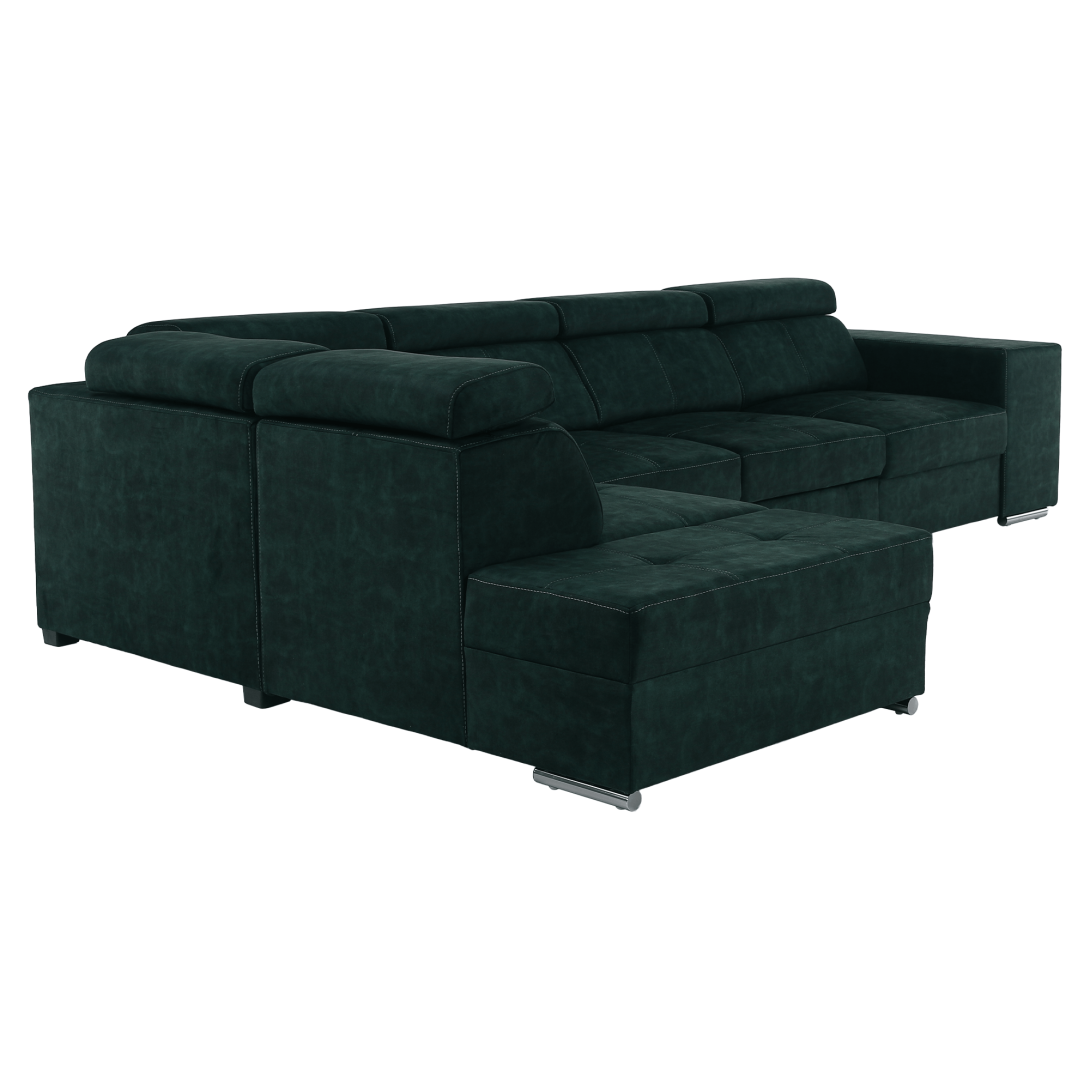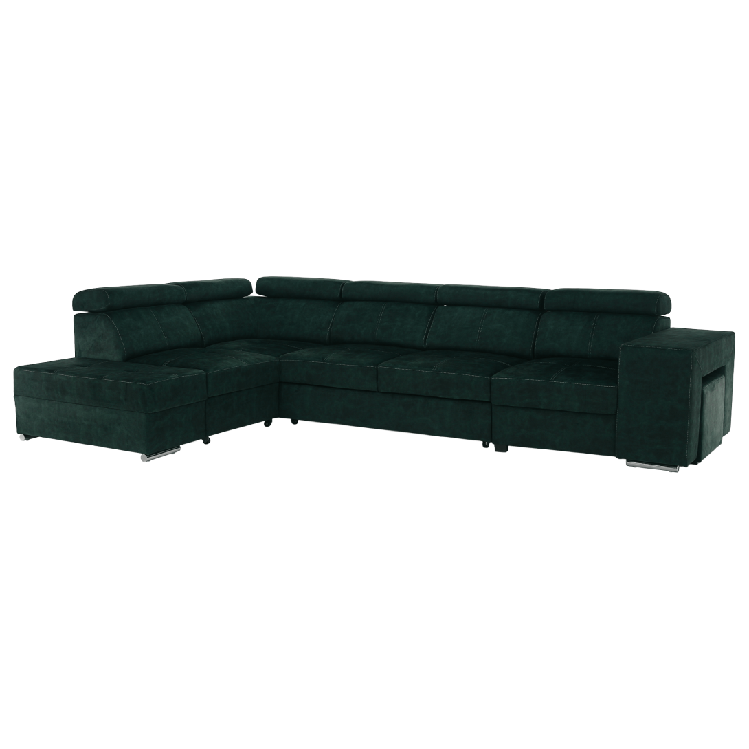 Materiál čalúnenia: látka Country 11Oderuodolnosť textílie podľa testu Martindale: 65 000 oderovFarba: smaragdováMateriál konštrukcie: borovicové drevo/bukové drevo/laminátová doskaRozmery (ŠxHxV): 334x210x79/97 cmPlocha na spanie (ŠxD): 130x190 cmVýška sedu: 43 cmHĺbka sedu: 56 cmRozmery otomanu (ŠxH): 97x165 cmRozmery opierky na ruku (ŠxHxV): 30x97x58 cmS taburetomRozmery taburetu (ŠxHxV): 40x33x48 cmCeločalúnenáRozkladaciaRohováS úložným priestoromĽavé prevedenieNa nožičkáchFarba nožičiek: chrómováVýška spodného priestoru od podlahy: 4,5 cmPolohovacie opierky hlavy5 stupňové polohovanie opierokVýplň: pružina falista/pur pena/molitanDodávané v demonteMožnosť objednania v 8 farebných odtieňoch látky Country v cene 1 455 Eur s dodacou lehotou 6-8 týždňov. Pri individuálnej objednávke je potrebné zaplatiť 20% zálohu z danej sumy. Po uhradení zálohy bude Vaša požiadavka zadaná do výroby.