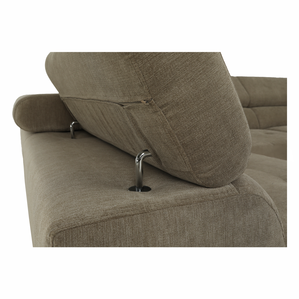 Materiál: látka Soro 13Oderuodolnosť textílie podľa testu Martindale: 90 000- 100 000 oderovFarba: svetlohnedý melírRozmery (ŠxHxV): 275x225x71/85 cm.Výška sedu: 40 cmHĺbka sedu: 59 cmVýška spodného priestoru od podlahy: 9 cmVýška chrbtovej opierky: 32/50 cmHĺbka sklopenej chrbtovej opierky: 41 cmOpierka na ruku (HxV): 105x62/69 cmŠírka otomanu: 104 cmNosnosť: 90 kgRohováDekoratívne prešitieZaujímavá opierka3 polohovacie opierky hlavy5 stupňové polohovanie opierokCeločalúnenáPružinová výplňNožičky kovové s povrchovou úpravou chrómĽavé prevedenieDodávané bez dekoratívnych vankúšikovDodávané v demontePonúkame vám možnosť objednať si sedačku v 7 farebných prevedeniach látky Soro podľa vzorkovníka. Váš výber napíšte priamo do poznámky v objednávke. Cena sedačky na individuálnu objednávku je verzia s rozkladom a úložným priestorom BUTON R 1.365 Eur a pevná verzia bez úložného priestoru BUTON P 1.259 Eur. Pri individuálnej objednávke je potrebné zaplatiť 10% zálohu z danej sumy. Po uhradení zálohy bude Vaša požiadavka zadaná do výroby. Doba dodania 6-8 týždňov.