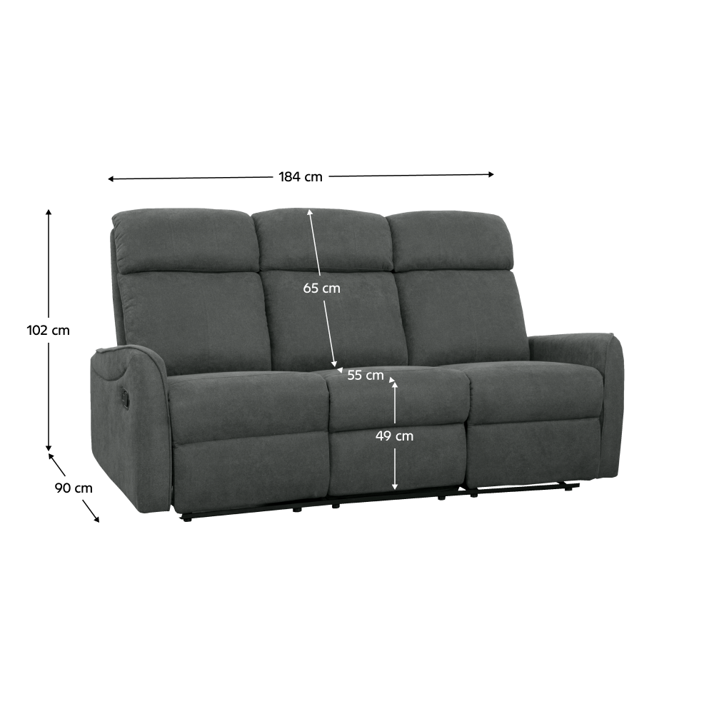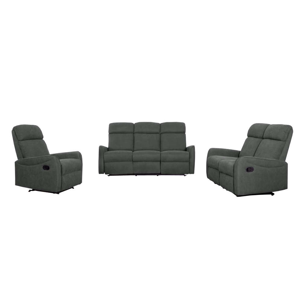 Materiál: látka/kovOderuodolnosť textílie podľa testu Martindale: 20 000 oderovFarba: tmavosiváRozmery trojsedu (ŠxHxV): 184x89/128x98/102 cmRozmery dvojsedu (ŠxHxV): 127x89/128x98/102 cmRozmery kresla (ŠxHxV): 71x89/128x98/102 cmVýška sedu: 46 cmHĺbka sedu: 51 cmVýška opierky chrbta: 67 cmVýplň: PUR pena3-sed s funkciou polohovania pravej a ľavej časti2-sed s funkciou polohovaniaKreslo je polohovacieMechanické polohovaniePodnož vysuniete pomocou páčkyDrevená konštrukcia: eukalyptusNosnosť: 120 kgDodávané v demonte