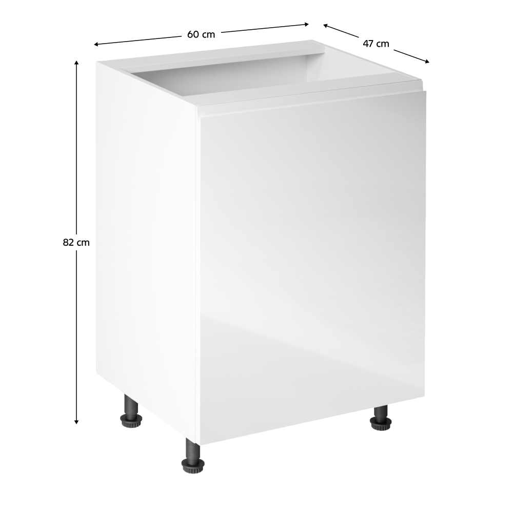 Spodná skrinka, Aurora D601FPrevedenie: DTD laminová/MDFFarba: biela/biela extra vysoký leskRozmery (ŠxHxV): 60x47x82 cmHrúbka materiálu: 15 mmJe nutné objednať potrebný počet ukončení spodnej lištySystém tichého zatvárania dvierokPracovná doska nie je súčasťou skriniek. Je možné si doobjednať pracovnú dosku v prevedení dub artisan s hrúbkou 38 mm za 56 eur/bm. Možnosť dokúpiť drez LAY ON. Spodné skrinky sú dodávané vrátane dolnej lišty, avšak presný rozmer, ktorý potrebujete, je potrebné uviesť do poznámky v objednávke. Ak rozmer neuvediete, môže sa stať, že vám sokel nebude dodaný. Ku každej dolnej skrinke, okrem D25PZ, je potrebné doobjednať 2 ks úchytok na sokel - cena 1Eur/2ks.