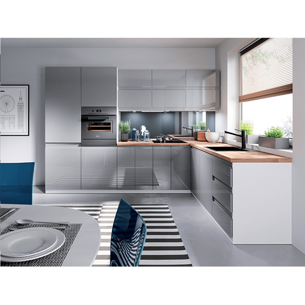 KONDELA Spodná skrinka, biela/sivá extra vysoký lesk, AURORA D80
