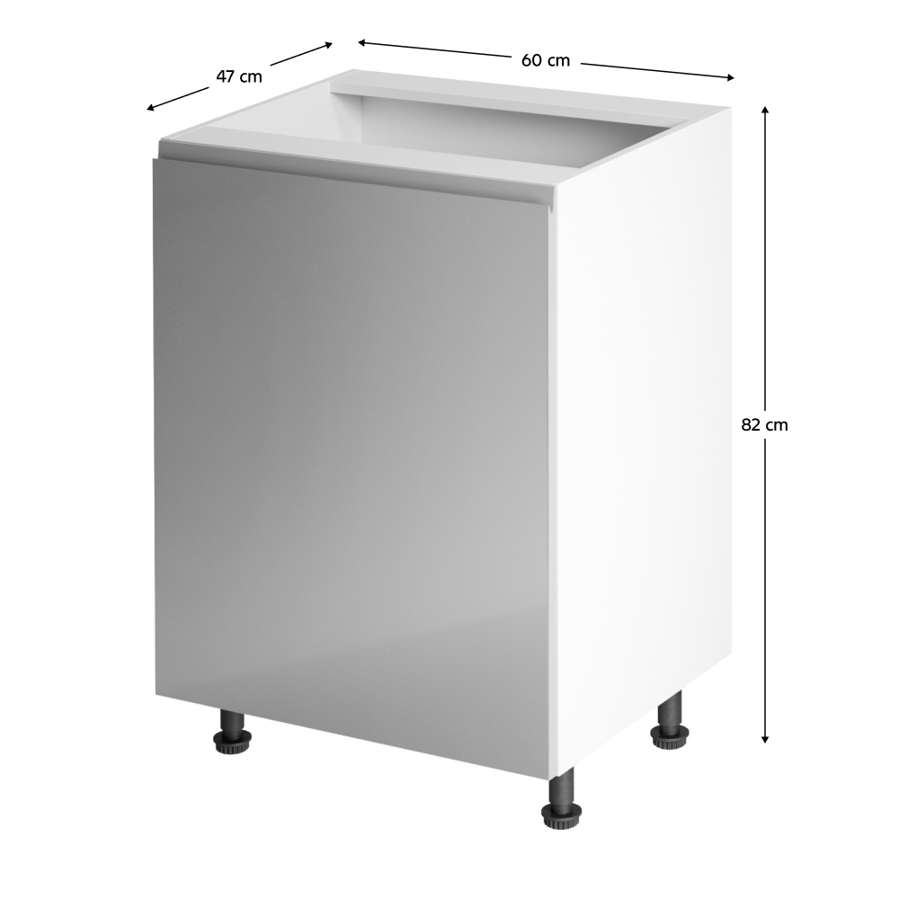 Spodná skrinka, Aurora D601FPrevedenie: DTD laminová/MDFFarba: biela/sivá extra vysoký leskRozmery (ŠxHxV): 60x47x82 cmHrúbka materiálu: 15 mmSystém tichého zatvárania dvierokJe nutné objednať potrebný počet ukončení spodnej lištyPracovná doska nie je súčasťou skriniek. Je možné si doobjednať pracovnú dosku v prevedení dub artisan s hrúbkou 38 mm za 56 eur/bm. Možnosť dokúpiť drez LAY ON. Spodné skrinky sú dodávané vrátane dolnej lišty, avšak presný rozmer, ktorý potrebujete, je potrebné uviesť do poznámky v objednávke. Ak rozmer neuvediete, môže sa stať, že vám sokel nebude dodaný. Ku každej dolnej skrinke, okrem D25PZ, je potrebné doobjednať 2 ks úchytok na sokel - cena 1Eur/2ks.