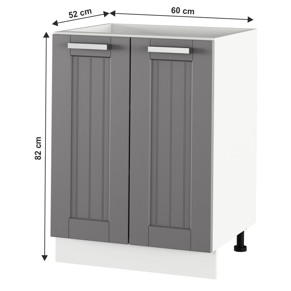 Materiál skrinka: DTD laminovaná/MDFFarba skrinka: tmavosivá/bielaMateriál úchytky: kovFarba úchytky: matný chrómRozmery (ŠxHxV): 60x52x82 cmHrúbka materiálu: 16 mmS nožičkamiS kovovou úchytkouDodávané so soklomPlastové nožičkyKvalitný slovenský výrobokDodávané v demonteSkrinky sú dodávané bez pracovnej dosky. Pracovnú dosku v prevedení gold craft oak v hrúbke 38 mm je možné doobjednať v cene 45 Eur/1 bm.