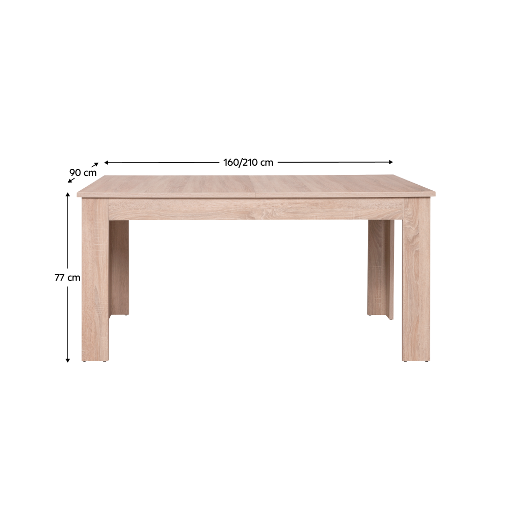 Jedálenský rozkladací stôl typ 12, vhodný na zariadenie obývacích izieb, spální aj pracovní, materiál: DTD laminovaná. Hrany jednotlivých komponentov sú ukončené vrúbkovanou lištou. Farebné prevedenie: dub sonoma. Rozmery (ŠxVxH): 160x77x90 cm, po rozložení 210x77x91 cm. Hrúbka materiálu korpus: 16 mm Hrúbka materiálu vrchnej dosky: 22 mm Dodávaná v demonte, len na objednávku s dodacou lehotou 3-5 týždňov.