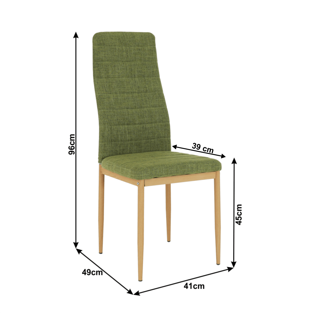 Jedálenská stolička COLETA NOVA vo farebnom prevedení zelená látka/ kovové nohy v prevedení buk.Oderuodolnosť textílie podľa testu Martindale: 50 000 oderovRozmery (ŠxHxV): 41x49x96 cmVýška sedu: 45 cmHĺbka sedu: 39 cm Nosnosť: 110 kgDodávané v demonte.